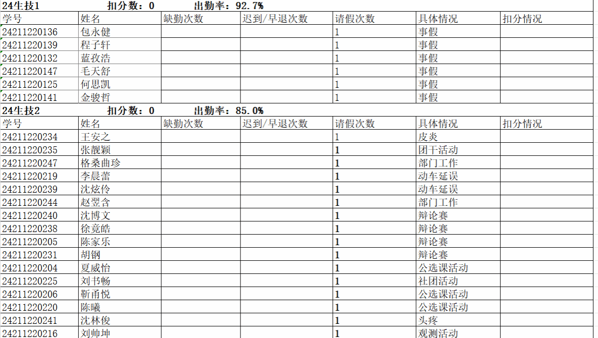 1、早自习时间为7:45-8:15,迟到一次扣1分,无故缺勤一次扣2分,一周内请假不得超过两次,否则算无故缺勤(特殊情况另加说明);