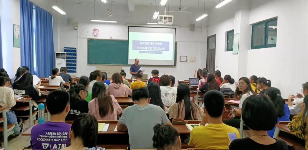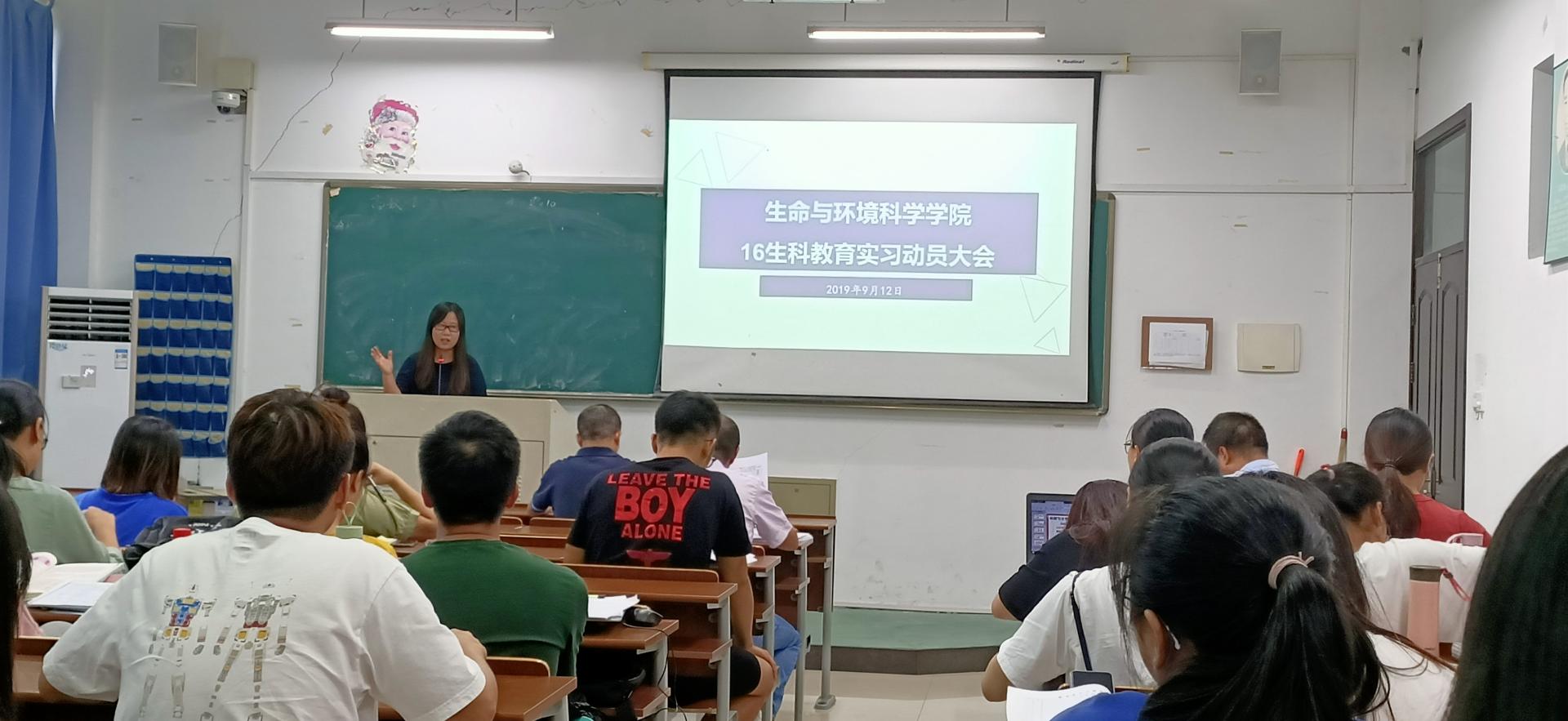 2019年9月12日14:00,公司16生物科学(师范)专业实习动员大会在南校区11A 201教室如期召开。温大yl永利集团官网登录陈华林经理,实习总负责人周丐晓,实习带队老师南旭阳、林国栋、陶月良与2016级的53名本专业员工参加了此次会议。会议由周丐晓老师主持。