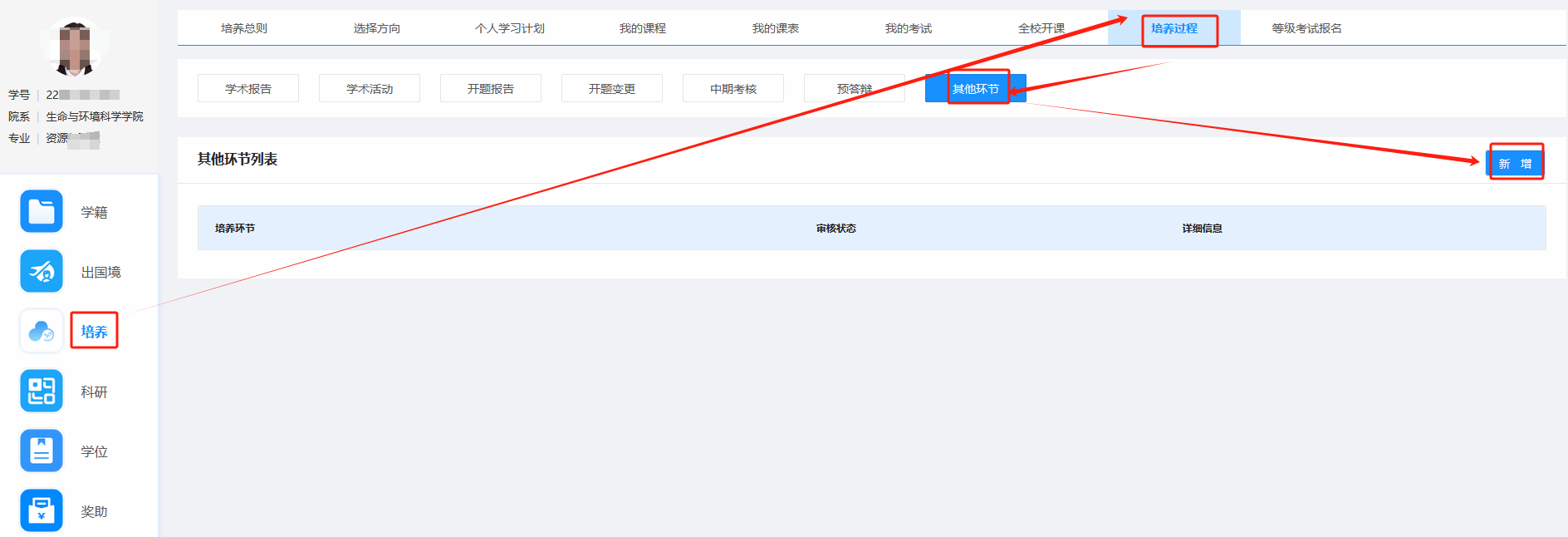 提交途径:研究生系统——培养——培养过程——其他环节——新增,先选择“培养环节”,再上传附件。