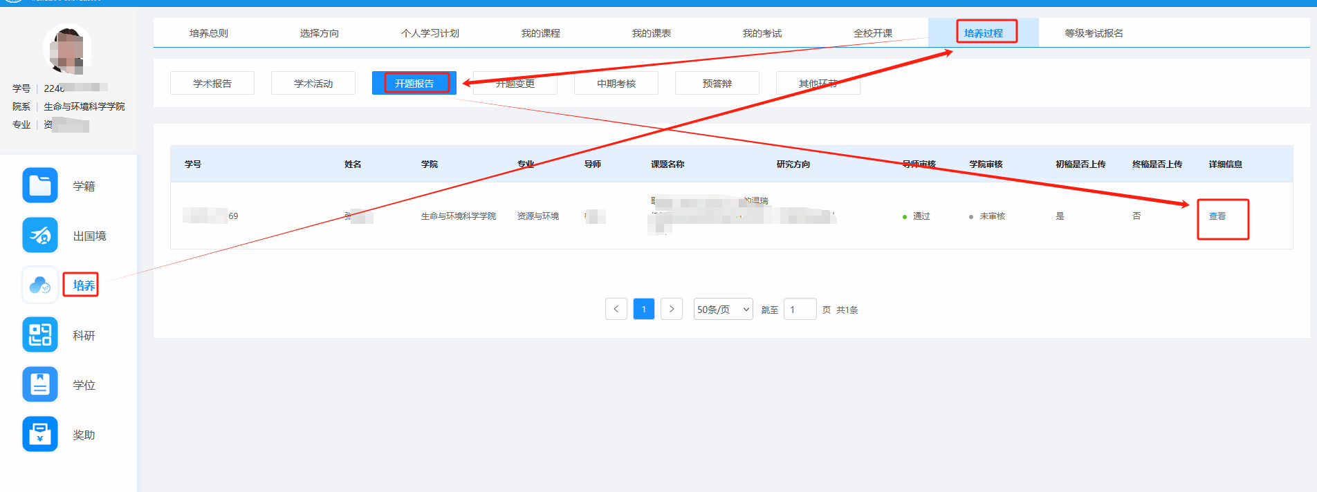 上传途径:研究生系统——培养——培养过程——开题报告。