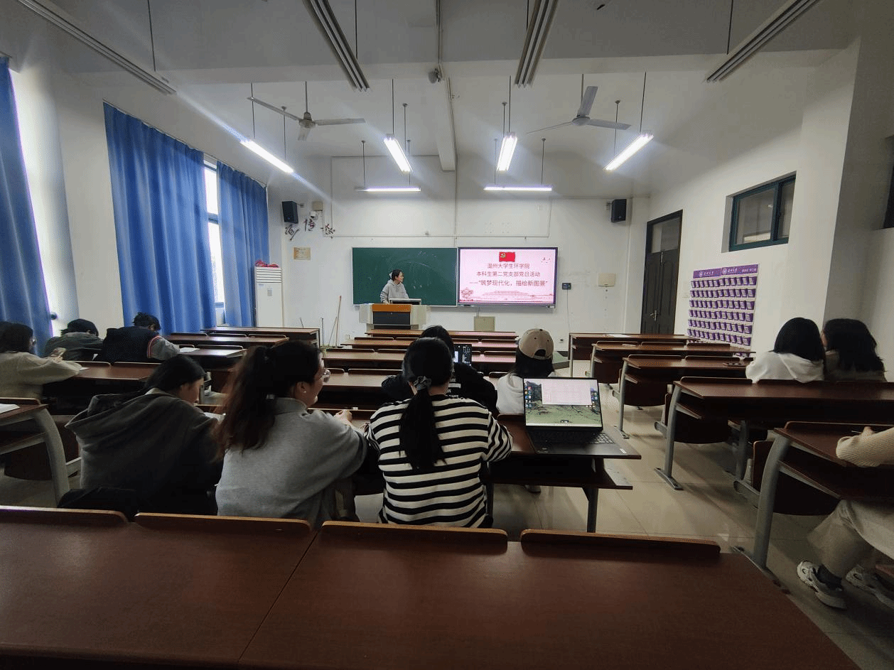 为深入学习贯彻2024年全国两会精神,学深悟透两会要点,把准时代脉搏,领悟两会中对教育工作者提出的新愿景,使支部党员明确定位,担当责任,公司本科生第二党支部于2024年3月23日下午13:30,在南校区11A-104开展了“筑梦现代化,绘制新图景”主题学习党日活动。共有16位正式党员和预备党员参加此次党日活动。