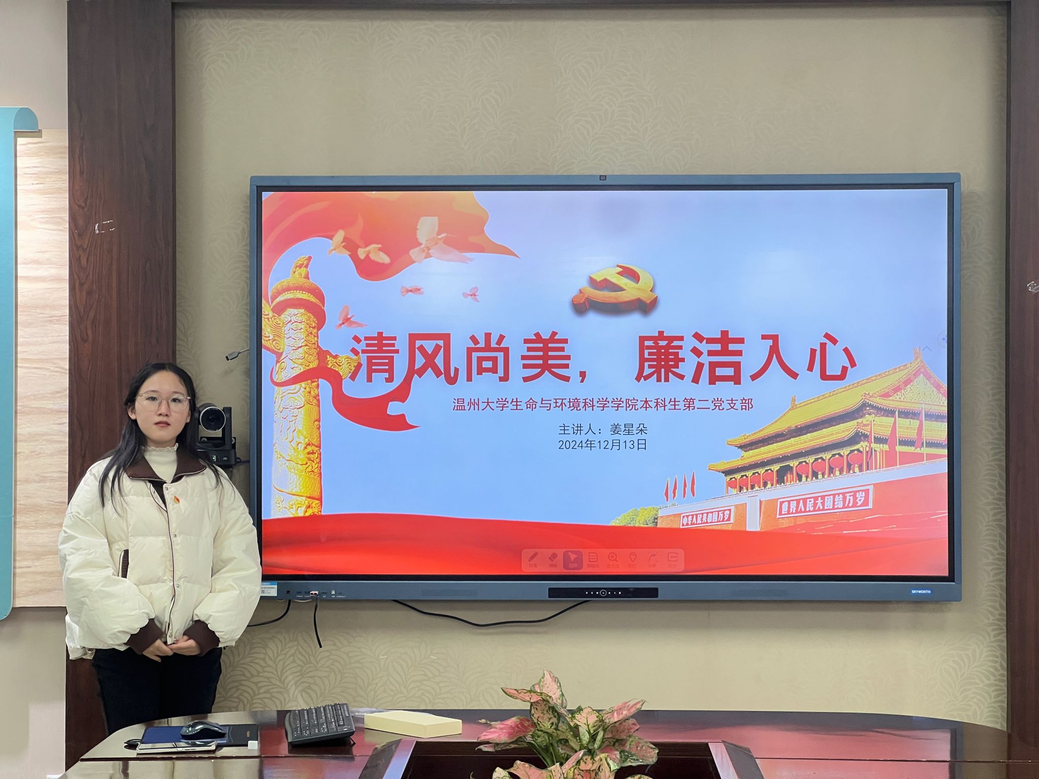 为学习贯彻党的二十届三中全会精神,落实新时代廉洁文化建设要求,扎实推动党风廉政建设走深走实,2024年12月13日,yl永利集团官网登录本科生第二党支部在10B204召开“清风尚美,廉洁入心”主题学习会。本次会议由姜星朵同志主讲,支部代理组织委员郑煜同志主持,共计8名正式党员、预备党员以及3名入党积极分子参加。