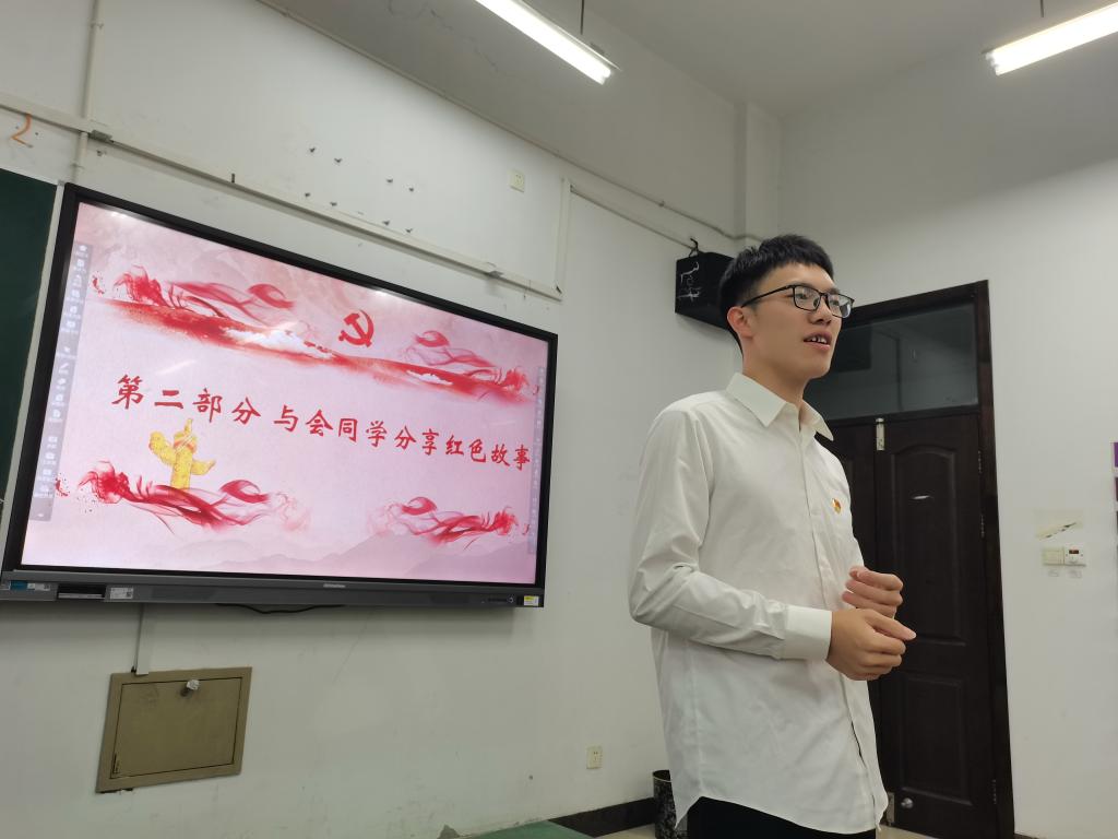 宣誓结束后,全体党员来到南校区11A204教室开展接下来的党日活动,和入党积极分子共同开展红色故事分享会活动。一个个红色故事描绘了在中国共产党成立至今所发生的一些令人动容的事迹,无论是长征中的相互扶持、相互鼓励,亦或是抗美援朝战役中的毅然就义,其精神内涵都是要求当代青年明白自身背负着的职责和使命,将红色故事中的精神内核内化于心、外化于行,在学习生活中争当先锋,展现青年党员、入党积极分子的先锋模范作用。