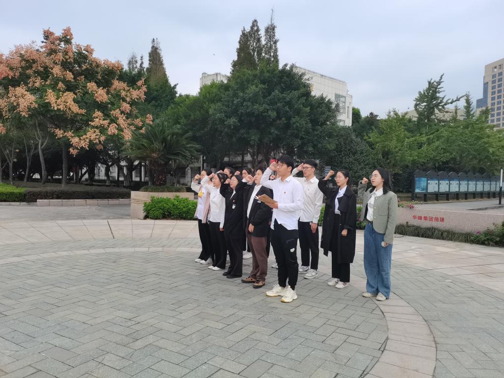 上午8点40分,在支部组织委员宋程扬同志的领誓下,支部党员们在公司红旗广场进行集体宣誓。面对红色旗帜,党员们举右手握拳,用铿锵有力的声音重温了入党誓词,将党对党员的要求、期望牢记于心。在党的二十大胜利召开前,党员们通过宣誓表达了自己不忘初心、牢记使命的决心,以此不忘党的光辉历史、不忘党对青年的热切期望、不忘自身所肩负的伟大责任。