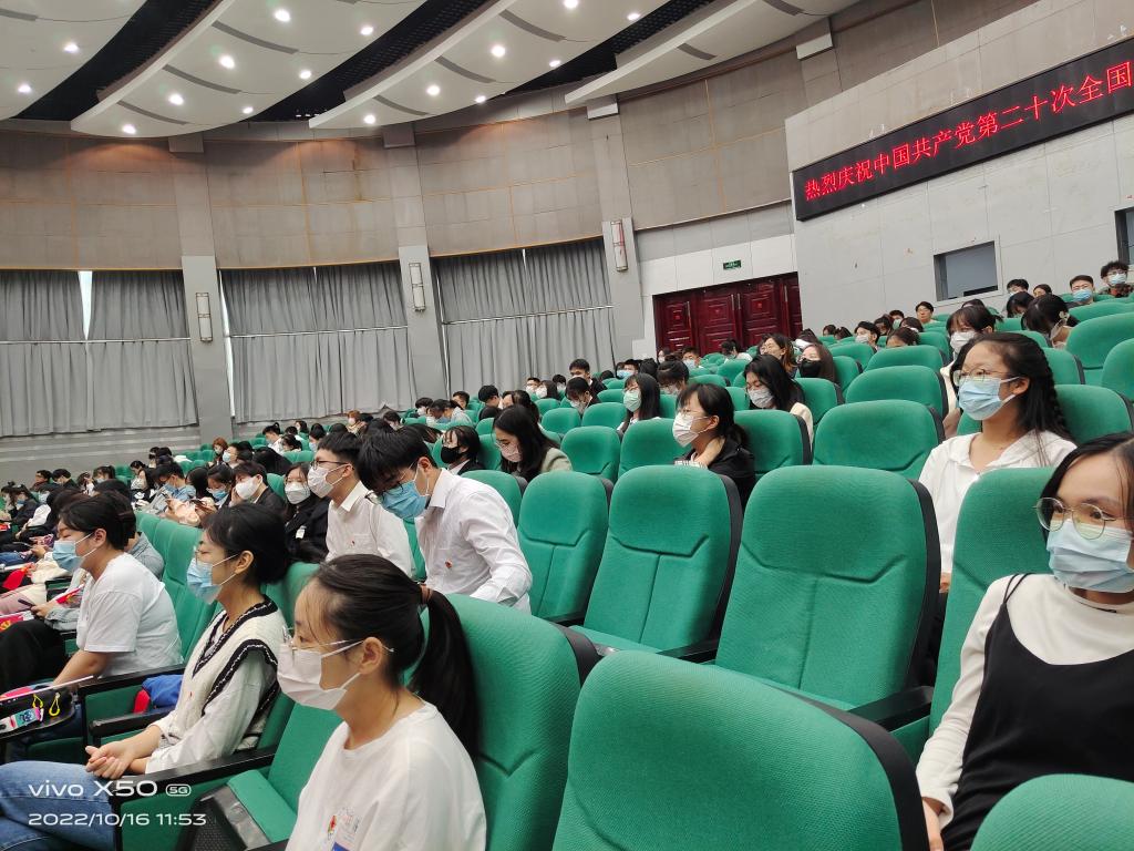 上午10点,举世瞩目的党的二十大在人民大会堂隆重开幕,支部分别组织党员和入党积极分子在南校区9号楼报告厅和11A204教室两个分会场,集中收听收看大会开幕盛况,聆听学习习近平总书记所作的报告。此次党的二十大主题为“高举中国特色社会主义伟大旗帜,全面贯彻新时代中国特色社会主义思想,弘扬伟大建党精神,自信自强、守正创新,踔厉奋发、勇毅前行,为全面建设社会主义现代化国家、全面推进中华民族伟大复兴而团结奋斗”,在报告中习近平总书记系统地介绍了党的十八大以来的十年里,我国所取得的各项伟大历史成就,并表达了对中国未来发展的衷心期望。收听收看过程中,大家聚精会神、边听边记,掌声伴随十年来取得的伟大成就和未来五年发展的希望,一次次响起……激动与自豪之情溢于言表。