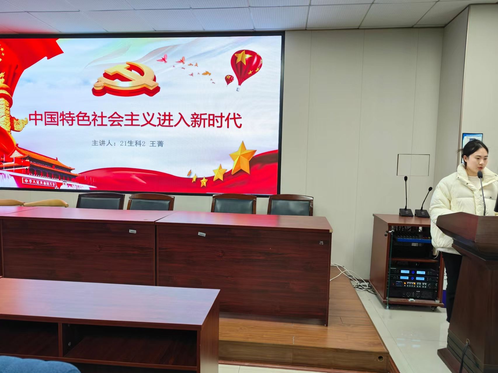 通过播放影视资料,王菁同志带领我们认识新时代,并详细剖析了中国特色社会主义进入新时代的基本依据和主要内涵。她坚信,这个新时代,中国定能为世界作出更大的贡献。王菁同志呼吁青年党员进入新时代要呈现新气象,创造新作为,和党中央保持高度一致,为新时代党的建设和发展提供坚强的政治保障和组织保证。