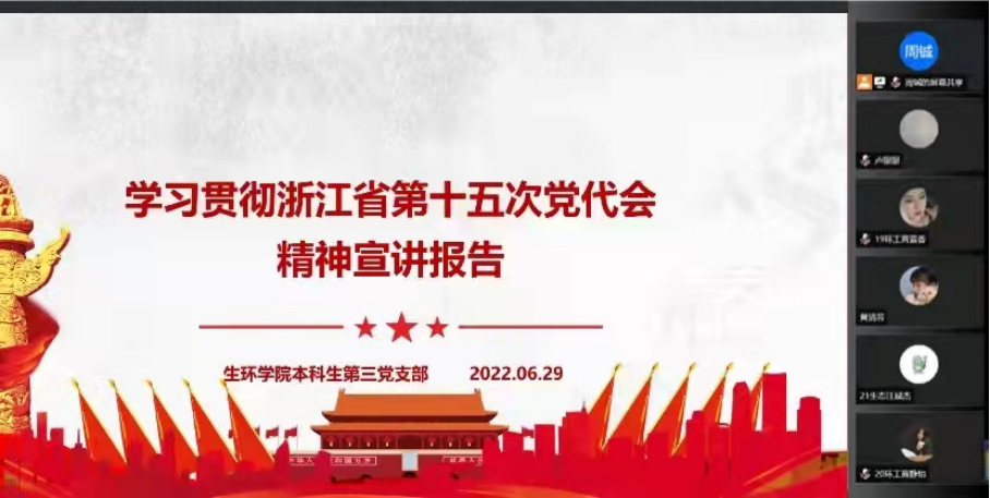 勇立潮头敢为先,奋楫扬帆谋新篇。中国共产党浙江省第十五次代表大会胜利闭幕,连日来,公司各本科生和研究生党支部以学促行,认真传达学习省第十五次党代会精神,以强烈的责任感、使命感和紧迫感推进党代会精神落实落地。各支部持续掀起学习热潮,于2022年6月28日至6月30日期间线上线下多种方式组织开展专题学习会学习会议精神。