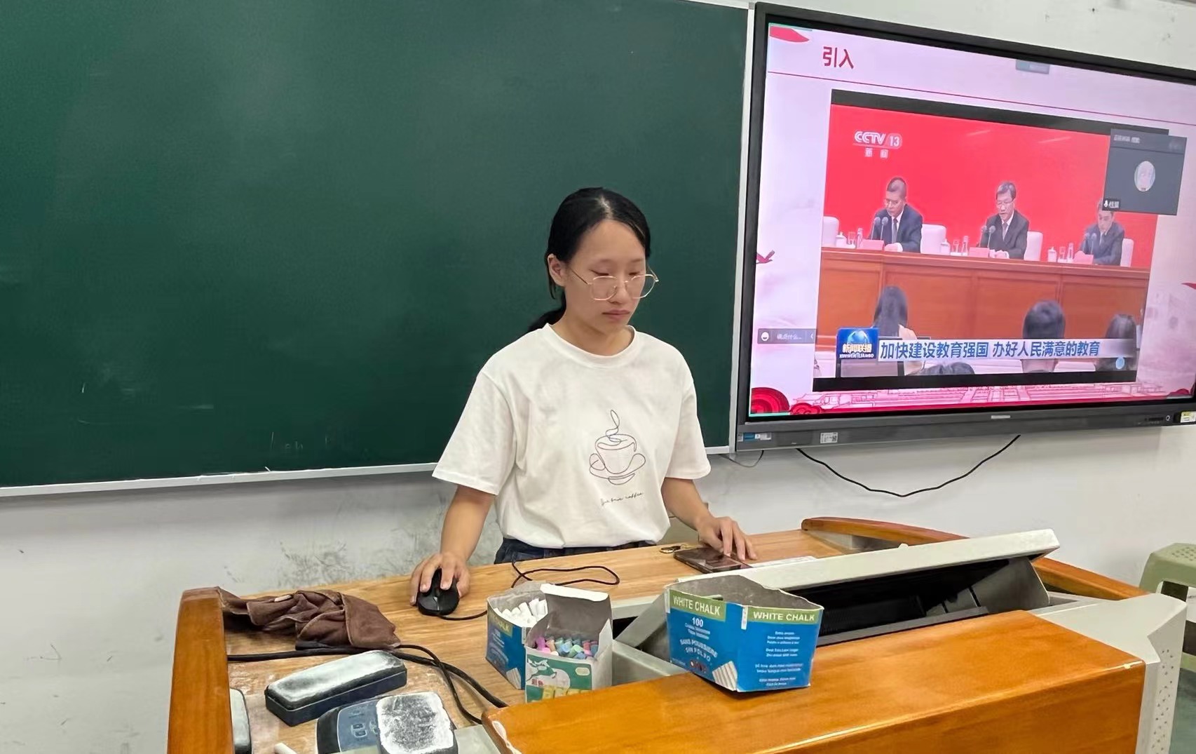 随后,姚雅棋同学详细讲述了教育普及水平实现历史性跨越。她介绍,在教育普及下,外地员工入学难、入学贵的问题得到了有效解决,中小员工双减政策取得阶段性成效,尊师强师惠师政策进一步推行,教师的地位得到显著提升……教育普及切实提高了人民生活保障、改善了民生水平,让每个人都能享有受教育的机会,拥有更加出彩的人生。