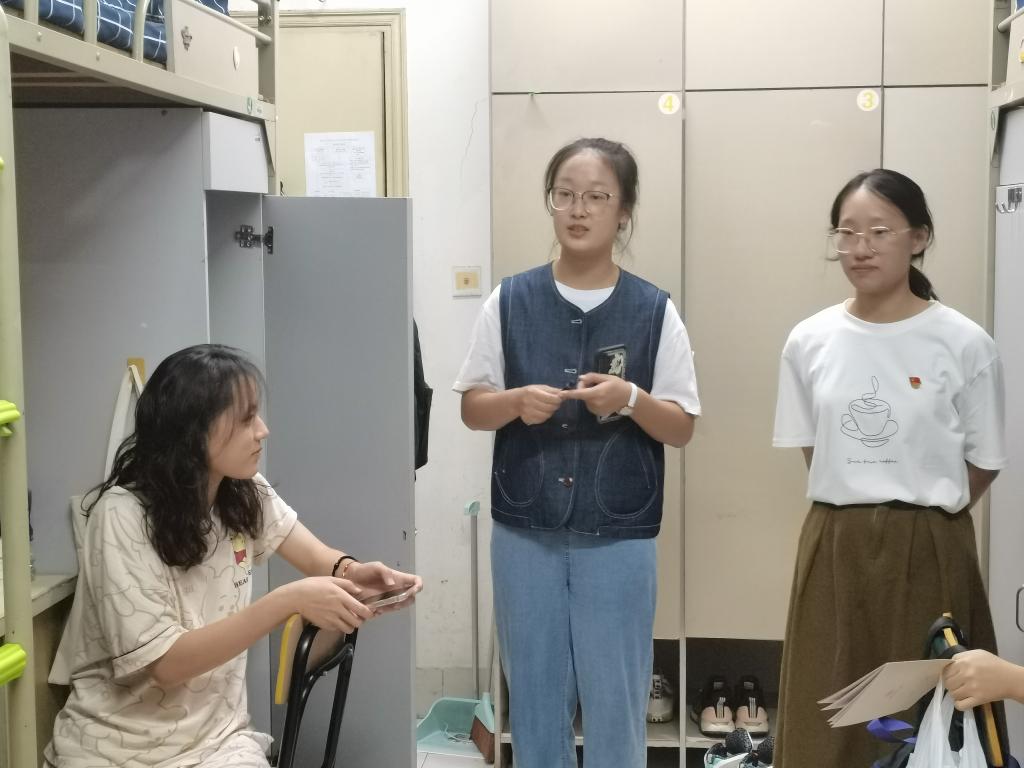 9月9日19:30,党员们正式开展下新生寝室活动。在下寝的过程中,党员们向新生宣传党务知识、详细介绍入党流程,鼓励新生加入党组织,并且强调如果决定入党一定要选择两基党课;新生刚来到校园,对于周围的一切都感到陌生,因此党员们也向新生强调防火防诈骗的重要性,并引导新生下载国家反诈APP,提高警惕意识;面对懵懂的新生,党员也是通过自身的经验来为他们解答生活和学业上的疑问。