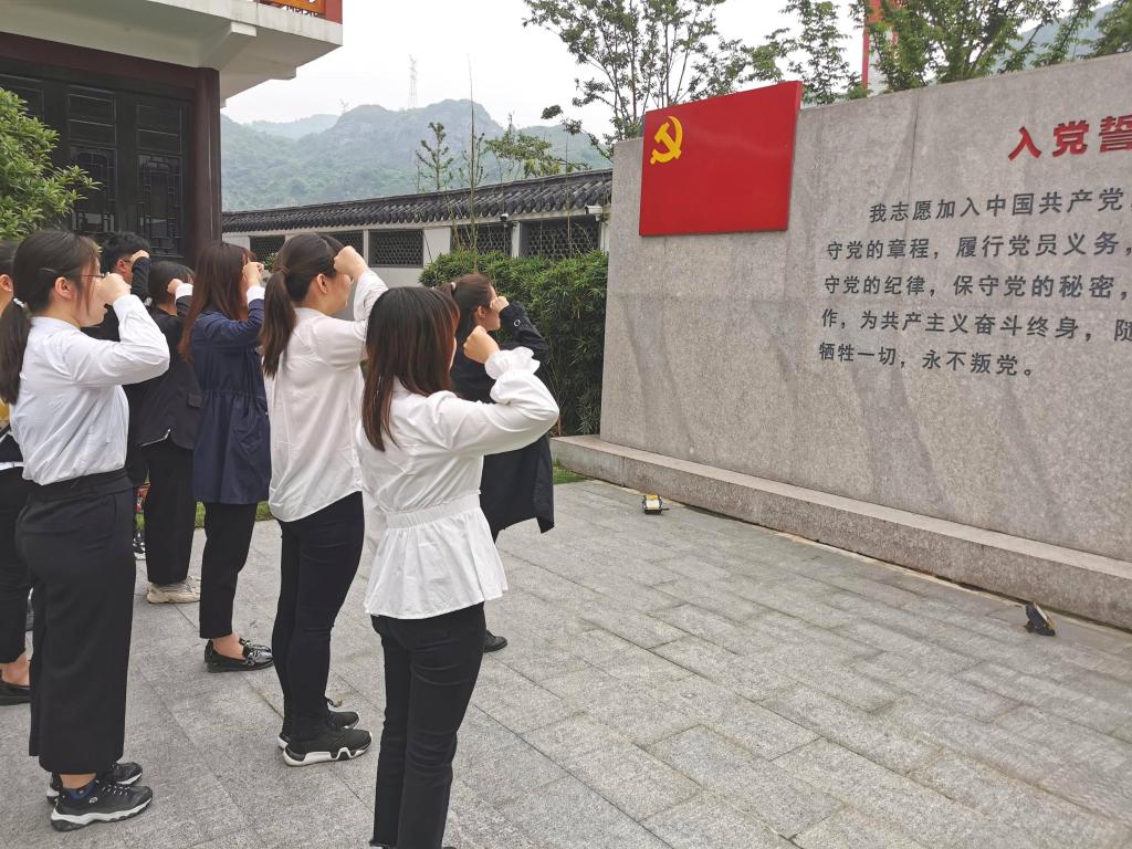 活动开始,讲解员带领着党员们参观了中共浙南一大纪念馆和当时用来进行秘密会议的地下通道,为大家讲解了浙南一大召开的历史以及浙南斗争过程。党员们追寻着革命烈士的历史足迹,切实明白了今日祖国的繁荣昌盛来之不易,感悟到了“浙南火种”精神的丰富内涵。参观结束后,党员们于浙南一大纪念馆的党旗前重温入党誓词。“我志愿加入中国共产党,拥护党的纲领,遵守党的章程,履行党的义务,……”党员们用洪亮的声音,坚定的语气,表明着自身为社会主义事业奋斗终身的决心和信念。