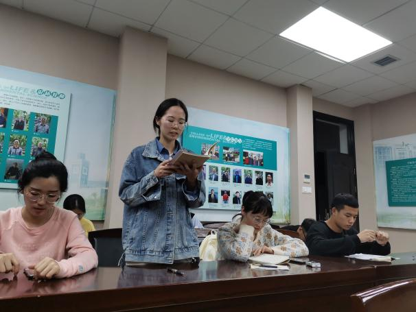 第一个环节,由组织委员张欣怡同志为与会党员们讲解红军的长征精神。主要从怎样认识红军长征的基本概念 、怎样认识遵义会议与其前后一些会议的关系、怎样认识红四方面军在长征中的贡献和作用、怎样认识中央红军长征到达陕北后的“两个奠基礼”这四个方面进行讲解,让党员们更深入地了解伟大的长征精神。