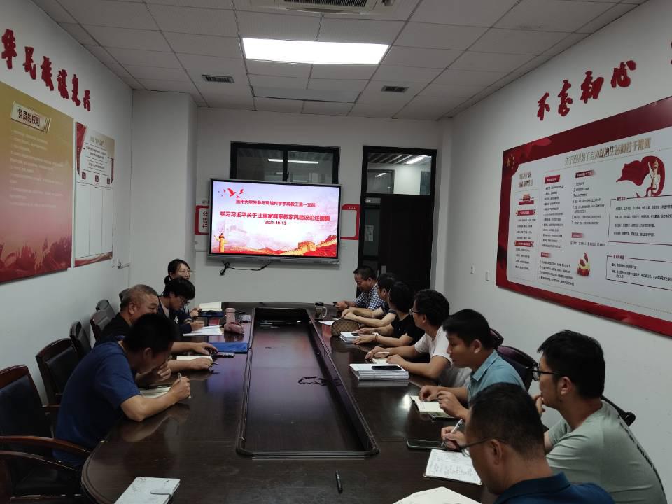 10月13日下午,在支部书记陈斌斌同志的主持下,公司教工第一党支部党员开展学习《论述摘编》活动。首先,由闻靖同志以党课的形式为大家解读相关文件。闻靖同志介绍了《论述摘编》一书形成背景及内容组成。然后,从家庭建设、家庭教育以及家风建设三个方面分别进行了解读:习近平总书记指出,在家庭建设实践中,我们要树立新的家庭观念,顺应时代潮流变化,深化文明家庭创建,维护家庭的和谐稳定,建立融洽的家庭关系,建设更高质量的家庭生活;而家庭教育则是推进以德树人、全面育人的首要阵地。闻靖同志以老一辈革命家的红色家风的传承为例,从立德、立言、立行三方面阐述了家庭教育的内涵和意义;最后,通过腐败分子的违纪违法案例,强调加强党员干部家风建设为推进全面从严治党向纵深发展的重要意义。