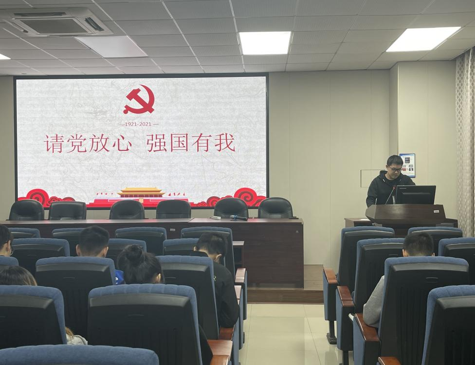 为了进一步加强公司员工党员、入党积极分子的党性修养,提高理论学习水平,2021年11月19日晚18:30,公司各本科生党支部于10B202共同召开了以“请党放心,强国有我”为主题的学习会。本次学习会由本科生第一党支部预备党员陈昊同学主讲,共计12名本科生预备党员和52名入党积极分子参与。