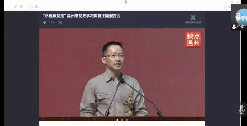 2021年11月9日下午,公司教工第三党支部召开支部大会,以在线视频的方式开展师德师风教育,并组织集中观看了市委市政府举办的“永远跟党走”温州市党史学习教育主题报告会现场视频。会议由组织委员肖朋朋同志组织,第三党支部到会13人。