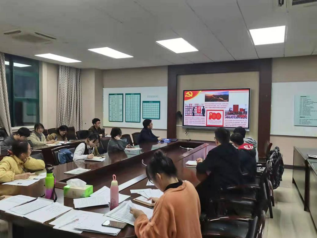 研究生第五党支部的赵婷雪同志说,在党的十九届六中全会上,党中央向全体党员发出时代号召:大力弘扬伟大建党精神,勿忘昨天的苦难辉煌,无愧今天的使命担当,不负明天的伟大梦想,以史为鉴、开创未来,埋头苦干、勇毅前行,为实现第二个百年奋斗目标、实现中华民族伟大复兴的中国梦而不懈奋斗。作为一名青年预备党员和员工干部,要做得就是时刻牢记初心使命,坚定理想信念,自觉按照党和人民的要求锤炼自己、提高自己。还有平时要注重对党史的学习,不断汲取到前人的智慧,增强自己的党性,这样能更加深刻地理解党的奋斗目标。