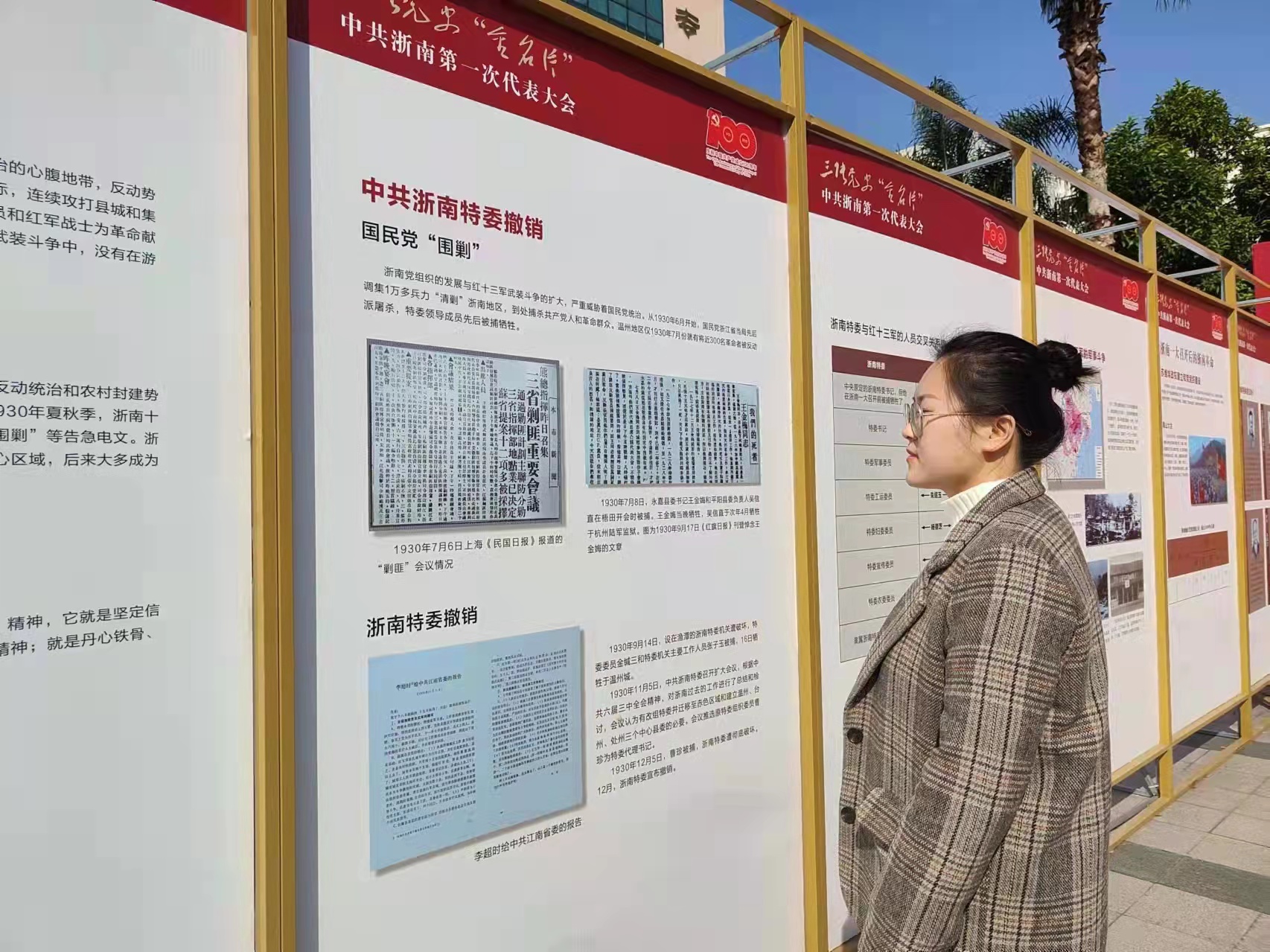 本次展览由公司党史学习教育领导小组办公室和瓯海区党史学习教育领导小组办公室联合举办,以三张“金名片”的形式讲述了党在瓯海的辉煌历程。这三张“金名片”分别是:中共浙南第一次代表大会,被誉为“浙南红色革命的火种”,在党中央直接领导下,带领温州人民进行了艰苦卓绝的革命斗争,谱写了浙南党史的壮丽篇章;温州和平解放谈判,被誉为“温州和平解放的摇篮”,它保全了文化底蕴深厚的东欧名镇,使人民生命财产免受损失;燎原社“包产到户”,被誉为“中国农村改革的源头”,这种精神一直激励着温州人民敢闯敢试,敢为人先。三张党史“金名片”,蕴含着丰富的红色革命印记,象征着伟大的红色革命精神,展现了共产党员先辈们的智慧和勇气,是温州人,浙江人乃至全国人民的宝贵精神财富。
