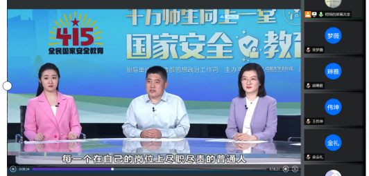 学习会正值4·15全民国家安全教育日,学习会上同志们还一同观看了国家安全教育有关的视频,主要包括了防止信息泄露的措施和维护国家安全的意识,并对电信诈骗有关信息进行普及,对每一个普通人提出维护国家安全的要求。视频播放结束后,俞金礼同志分享了自己的学习体会——我们作为员工平时也可能会接触到网络上的非法言论、极端言语以及来自间谍的蛊惑,当我们意识不坚定时,就可能做出危害国家安全的事情,所以我们应该树立国家利益高于一切的观念,严防不良势力的渗透。
