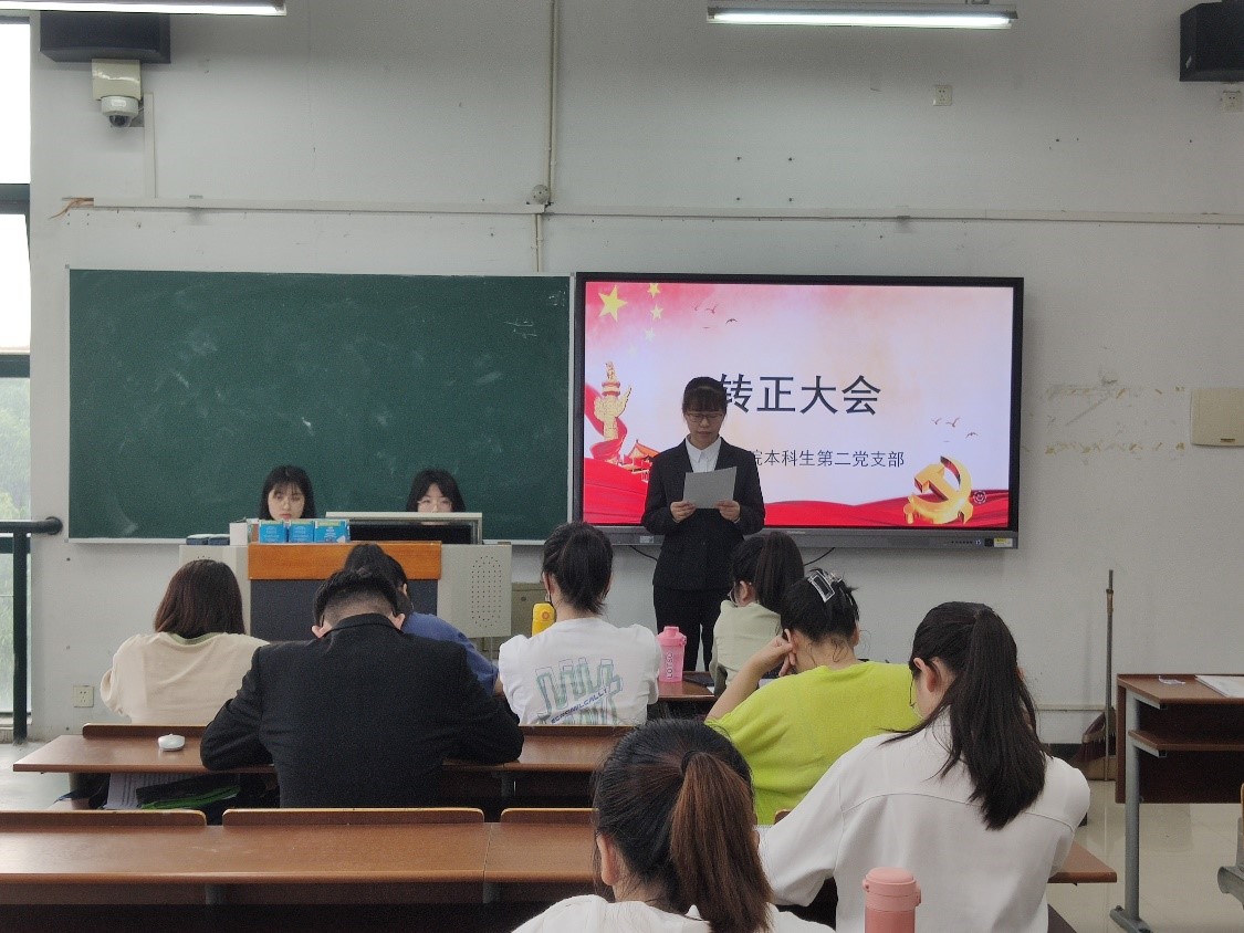 2022年5月29日下午1:30,公司本科生第二党支部于南校区11A-303教室举行了本学期的预备党员转正大会。本次会议,共有4名正式党员、22名预备党员参与,由支部代理副书记施清妮同志和代理组织委员施依凡同志主持。