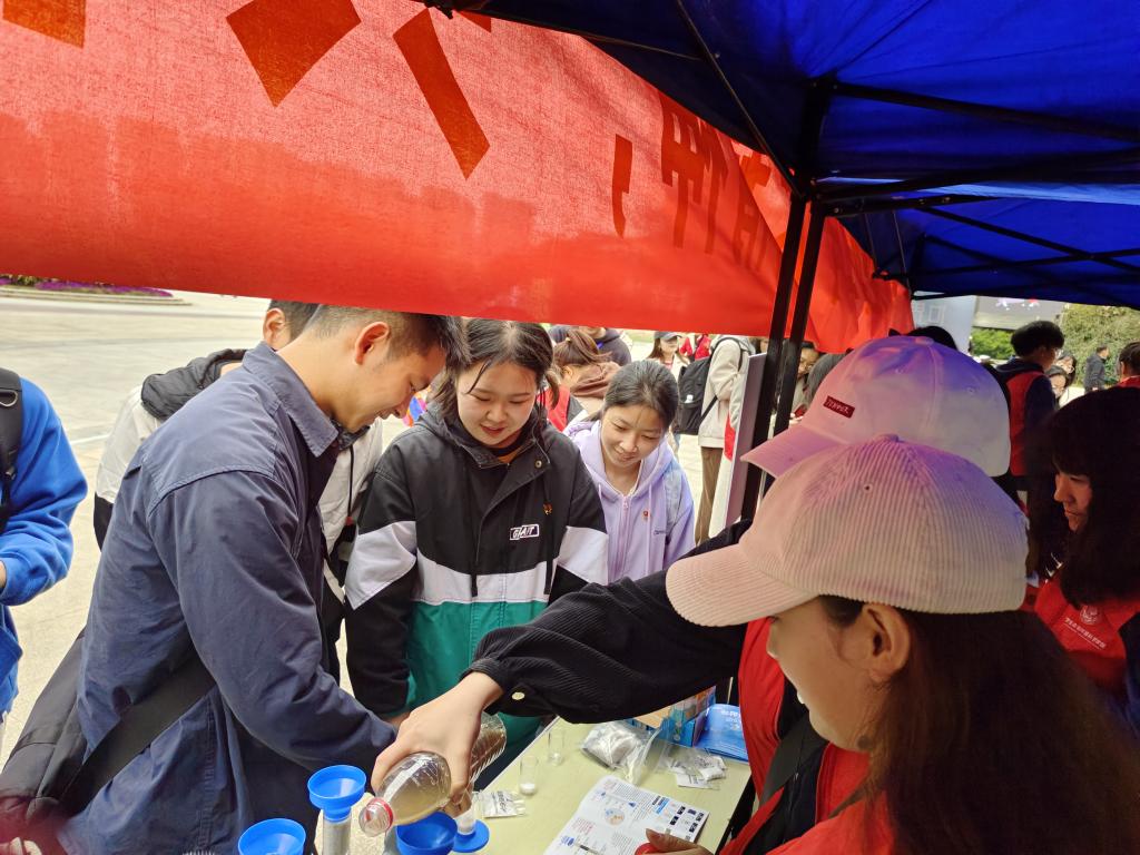 活动四:净水装置展示。活动中,志愿者为大家解答了水质安全和生活饮用水相关问题,并在其带领下,对净水装置进行组装,了解了污水净化的过程和原理,充分意识到每一滴洁净水的来之不易。