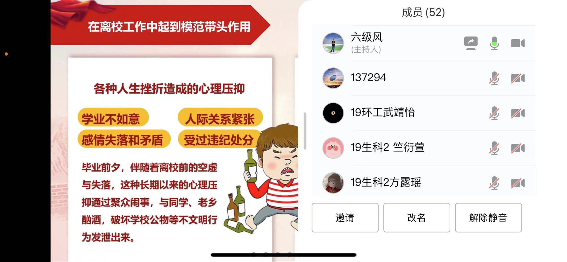 本次会议圆满结束。相信通过本次会议,毕业生党员能明确党员组织关系转接中的各个步骤并牢记母校的培养与期望,勇于肩负新时代的历史使命,坚定理想信念,以饱满热情和昂扬斗志投身社会。