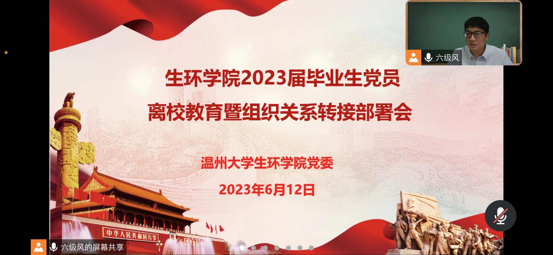 为加强毕业生党员的教育与管理,切实做好毕业生党员组织关系转接工作,公司于6月12日14:00,在线上召开2023届毕业生党员离校教育暨组织关系转接部署会。本次会议由专职组织员刘纪峰老师主持,2023届全体毕业生党员参加。