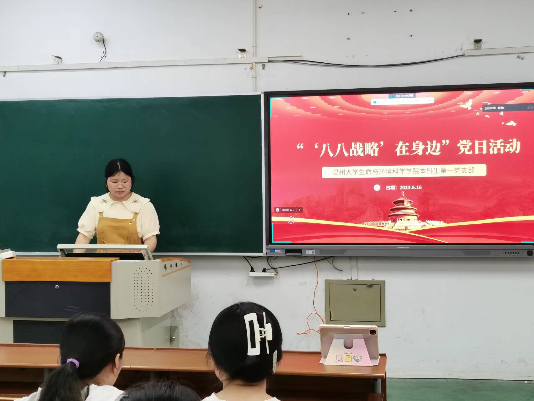 2023年是“八八战略”实施20周年,为了更好地坚持习近平新时代中国特色社会主义思想的指导地位,深刻领悟“两个确立”的决定性意义,进一步增强“四个意识”、坚定“四个自信”、做到“两个维护”,深入领会“八八战略”的重要意义、核心内容、战略举措,根据上级党委要求,2023年6月16日公司本科生第一党支部于11A202召开“‘八八战略’在身边”主题党日活动暨本科生第一党支部换届选举大会,本次党日活动线上线下同步召开,支部党员、入党积极分子共34人参与,由支部代理组织委员沈逸彬同志主持。