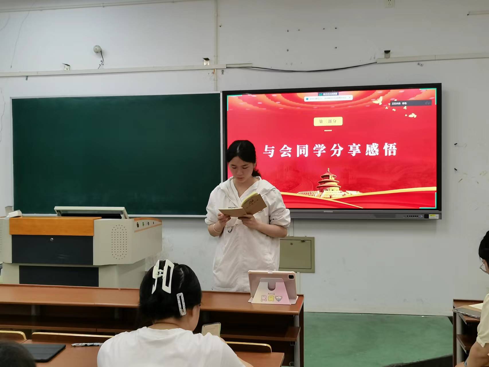 会议第二项,宣讲员宣讲。陈玉婷同志从自己的家乡平阳县来看“八八战略”对于乡村振兴的指导作用,注重从“八八战略”来领悟发展浙江的底线思维。接着,她讲述了“八八战略”和“红船精神”两者的联系,“八八战略”是以“红船精神”为鼓舞和指导的具体实践的产物,“八八战略”的提出和形成,吸吮着“红船精神”的营养,是对“红船精神”的继承和践行的结果,也是对“红船精神”弘扬和发展的成果。最后,她讲到我们身为新时代青年,更要学深悟透“八八战略”,积极锻炼自己,激发创新精神,主动担当责任,成为一个有所成、有所用的青年。