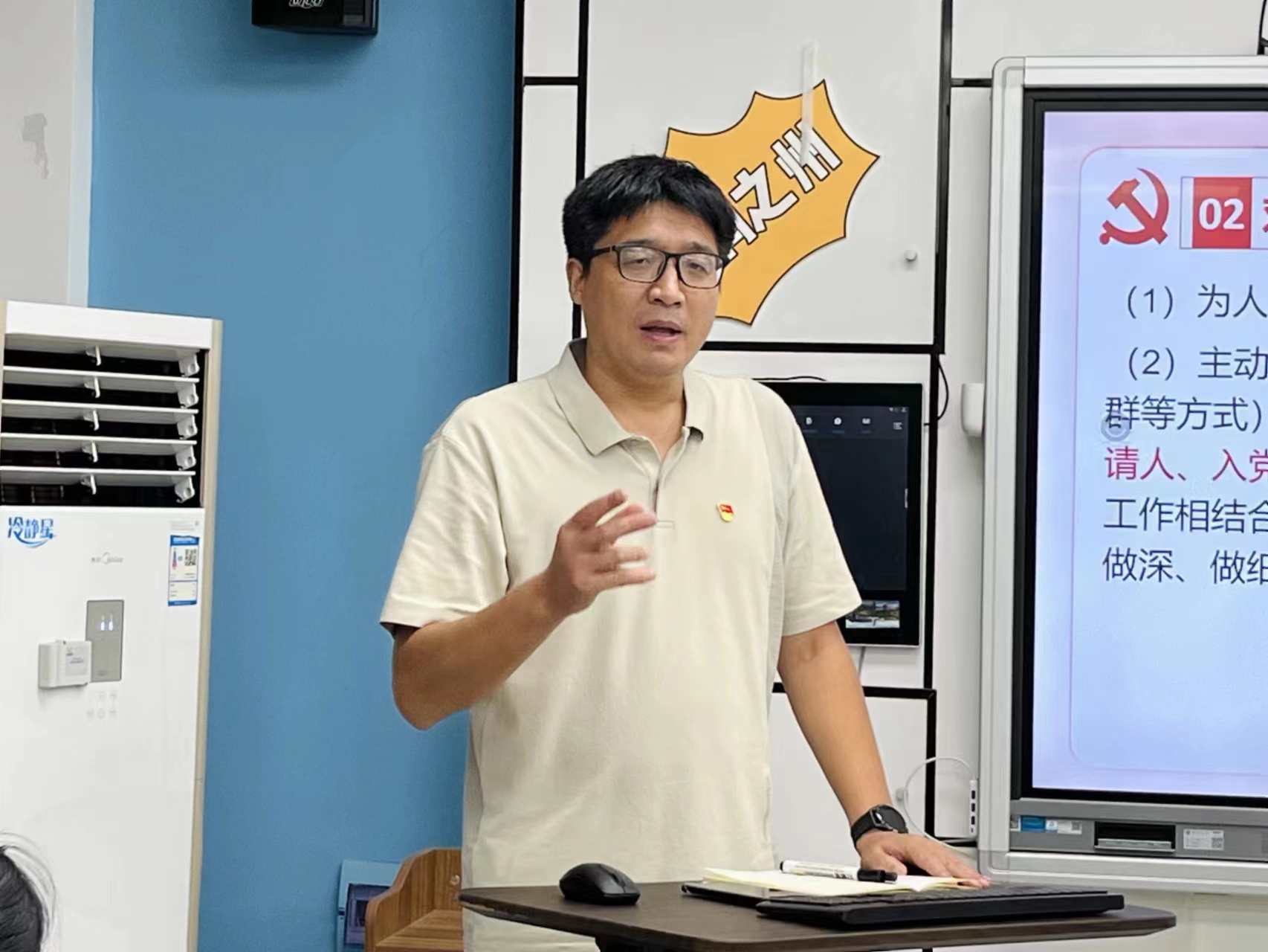 会议伊始,刘老师向与会者明确了班级入党联系人身份的重要性以及其具体的工作职责。刘老师表示,班级入党联系人作为联系党支部与班级团支部的桥梁,工作不应当局限于跟入党申请人谈话等基本工作,还应做好培养、联系和考察工作。同时,刘老师还对党员发展过程中需要明确的时间节点进行了重点梳理和提示。刘老师介绍完毕后,各入党联系人积极提问,刘老师进行了详细解答。最后,刘老师呼吁各班级入党联系人应自觉做到在生活学业等方面为人细心、勇于担当,发挥党员的先锋模范作用。