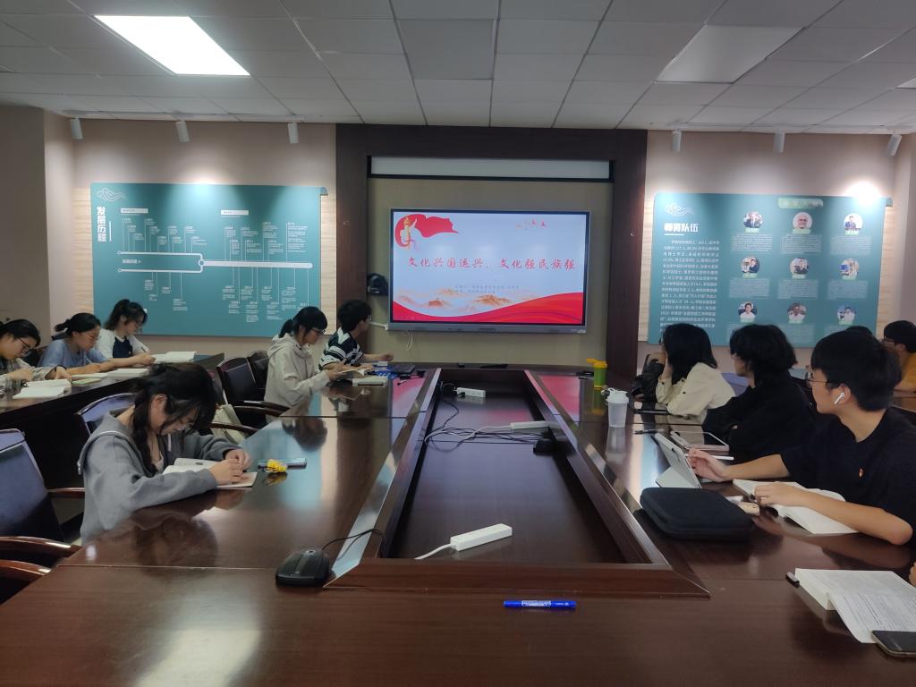 为学习贯彻习近平新时代中国特色社会主义思想主题教育,宣传习近平文化思想,yl永利集团官网登录本科生第四党支部于2023年10月14日在10B204召开“铸就社会主义文化新辉煌”主题学习会。本次学习会由代理副书记吕晓彤同志主持,曹俏瑶同志和仇尔杰同志主讲。