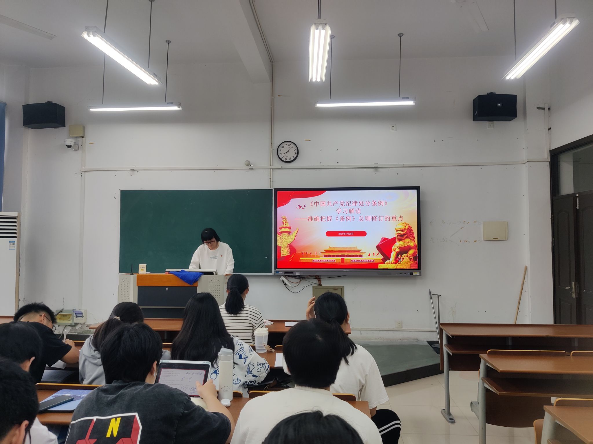 为深入学习贯彻修订后的《中国共产党纪律处分条例》(以下简称《条例》),公司本科生第四党支部于5月20日晚在11A-305开展党纪学习教育,本次支部学习会由代理副书记吕晓彤同志主持。