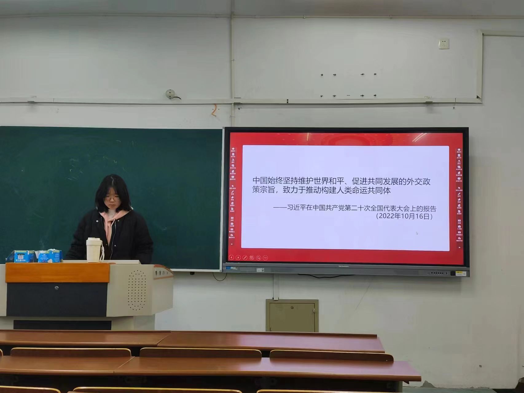 本次党日活动共分为两个部分,第一部分为“促进世界和平与发展,推动构建人类命运共同体”主题学习会,由张灿和侯鲁振同志主讲。