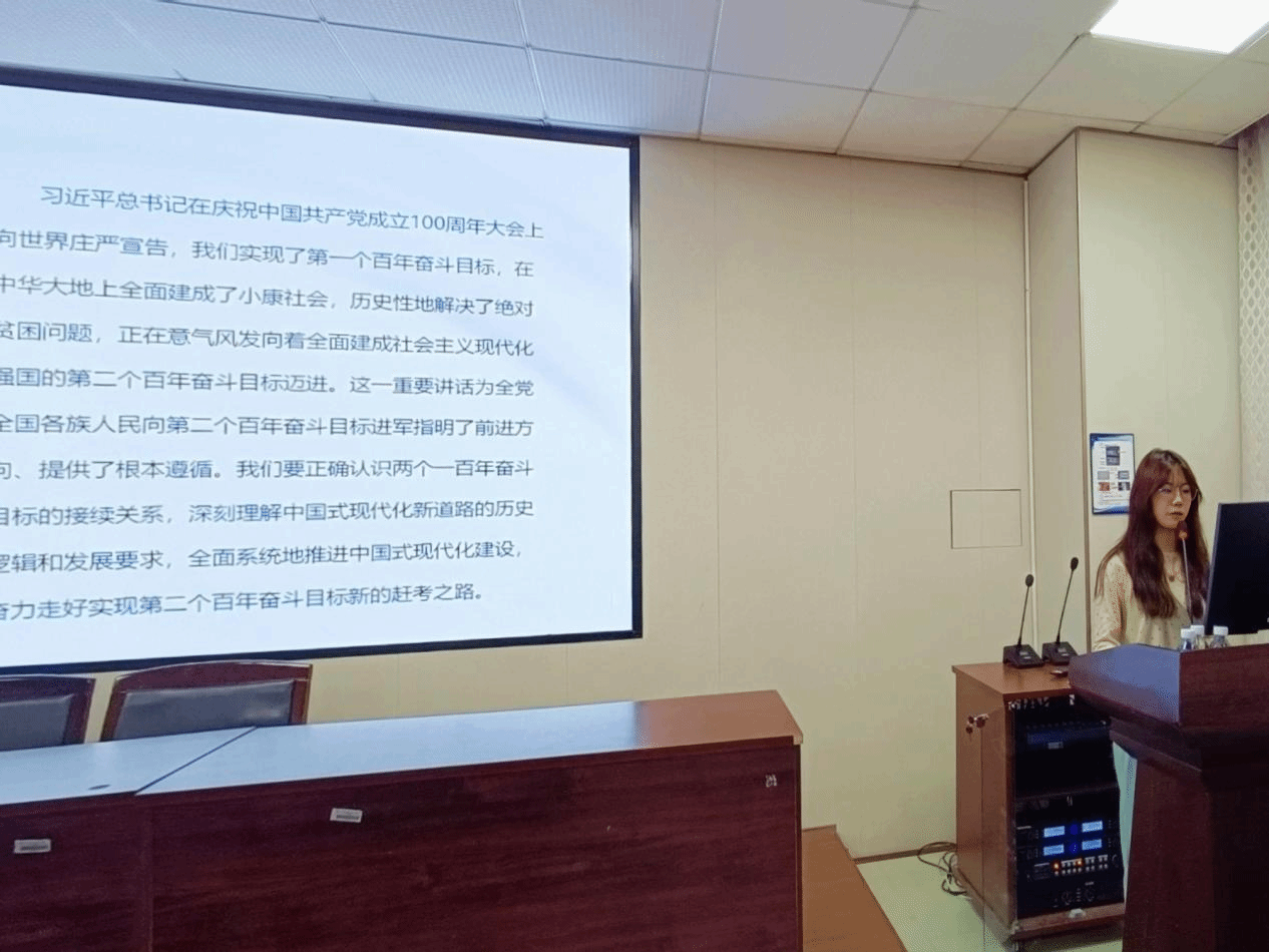 阮欣颖同志以“两个一百年”奋斗目标为线索,阐明了全面建成小康社会在实现中华民族伟大复兴征程中的关键作用,并从物质、政治、精神文明建设三个方面对全面系统地推进中国式现代化建设做出了展望。她呼吁,为达到社会有机体的要求,作为新青年的我们要自觉投身于中国特色社会主义经济、政治、文化和社会建设,抓住机遇,迎接挑战,担当起实现中华民族伟大复兴的历史使命。