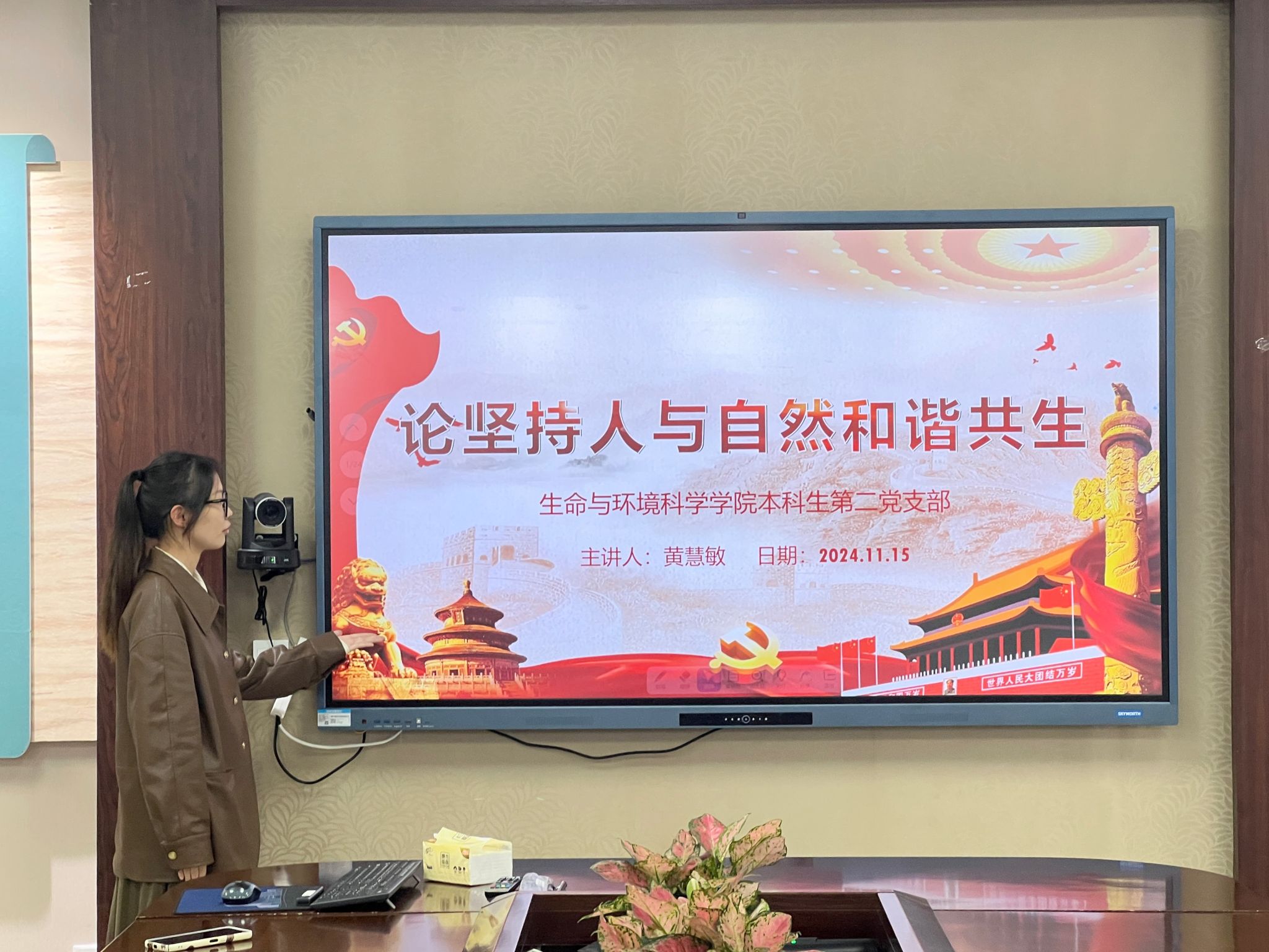 为学习贯彻党的二十届三中全会精神,认真领会新时代新征程深化生态文明体制改革要求,深学笃行习近平生态文明思想,2024年11月15日,yl永利集团官网登录本科生第二党支部在10B204召开“论坚持人与自然和谐共生”主题学习会。本次会议由黄慧敏同志主讲,支部代理组织委员郑煜同志主持,共计9名正式党员、预备党员以及6名入党积极分子参加。