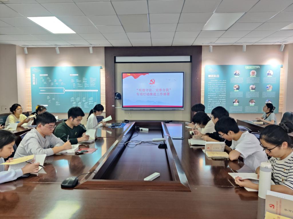 会议伊始,吕晓彤同志传达了公司新学期的党务工作,并介绍了“明德守法、完善自我”专项行动的具体要求,并号召同学们积极进行主题教育学习,认真阅读《习近平新时代中国特色社会主义思想专题摘编》,领悟党的二十大精神,做好学习笔记。