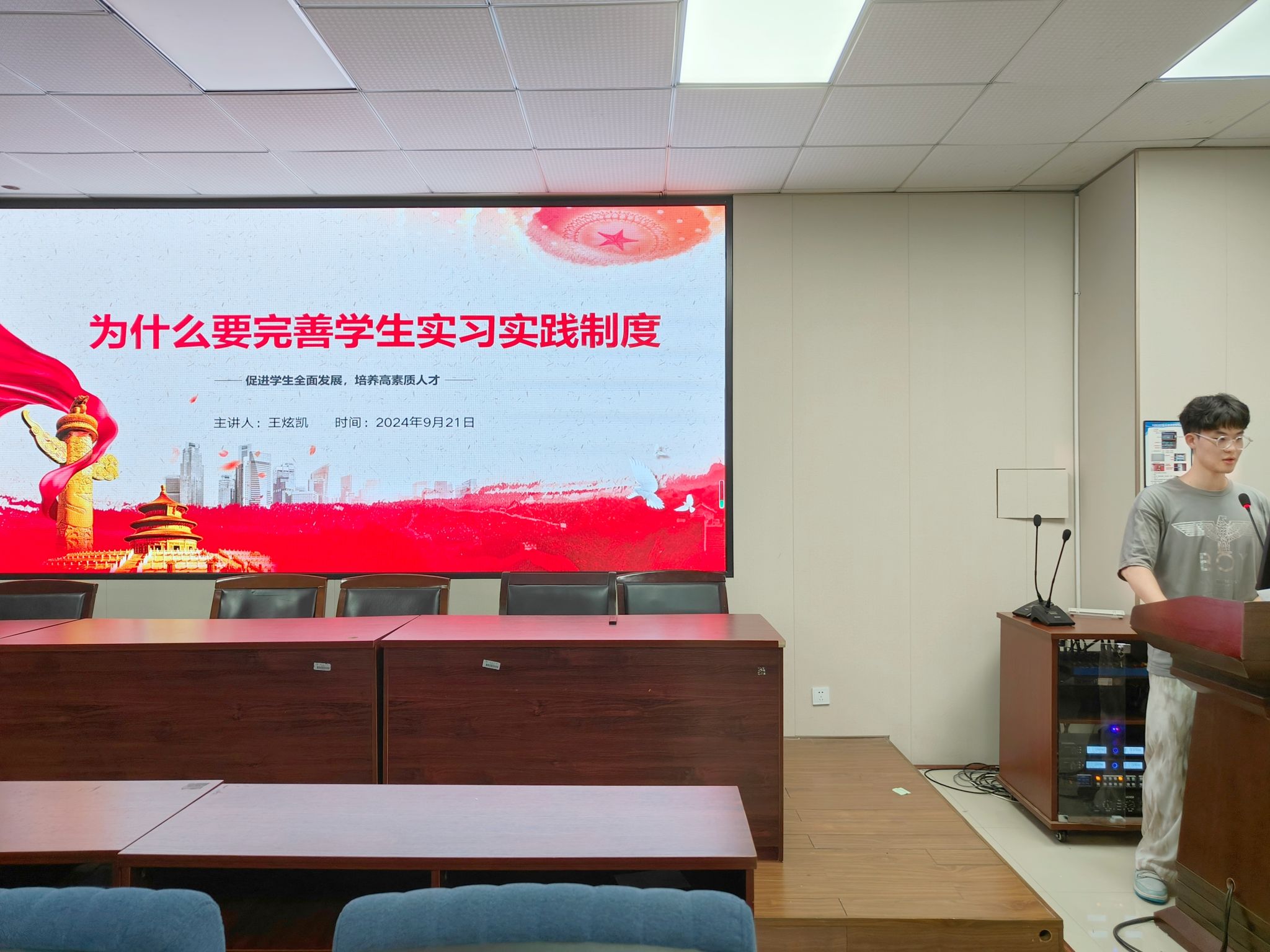 为深入学习贯彻党的二十届三中全会精神,全面认识《中共中央关于进一步全面深化改革、推进中国式现代化的决定》对“完善员工实习实践制度”的重要部署,yl永利集团官网登录员工党支部于9月21日在10B202召开“为什么要完善员工实习实践制度”主题学习会。本次学习会由王炫凯同志、张盛浩同志主讲,李佳溢同学主持,共计56名党员和47名入党积极分子参加。