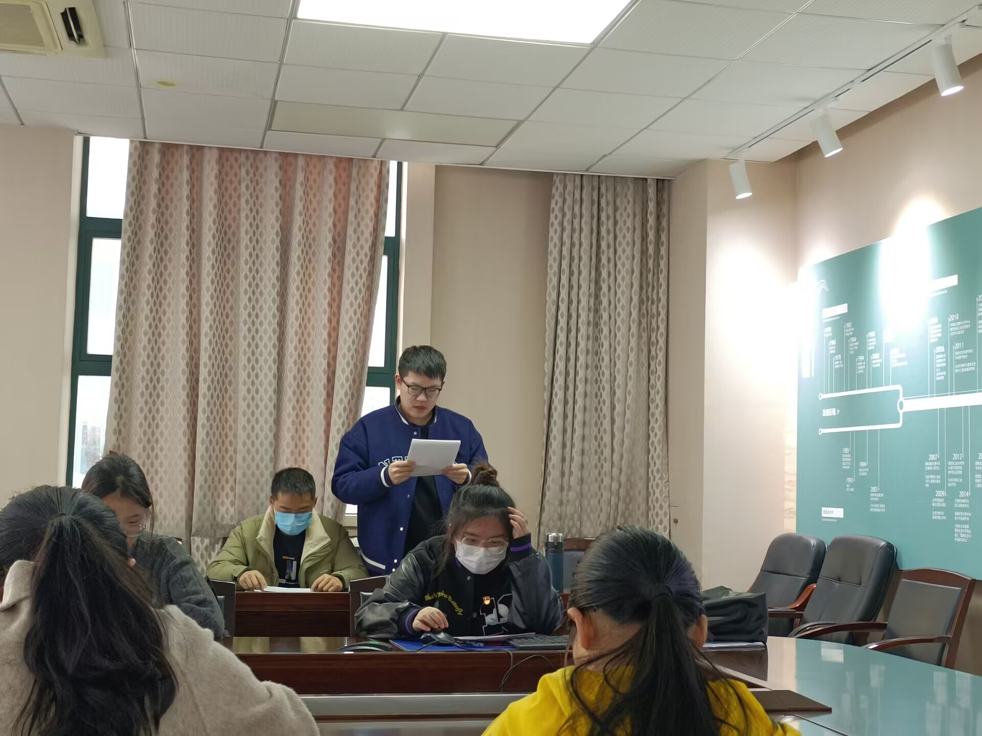 会上,首先由党支部书记陈姗姗老师进行工作汇报并讲话,带领党员同志们回顾总结了上一年党支部所做工作和所取得的成果,并且围绕民主评议进行介绍,向党员同志们介绍民主评议的流程和规则。
