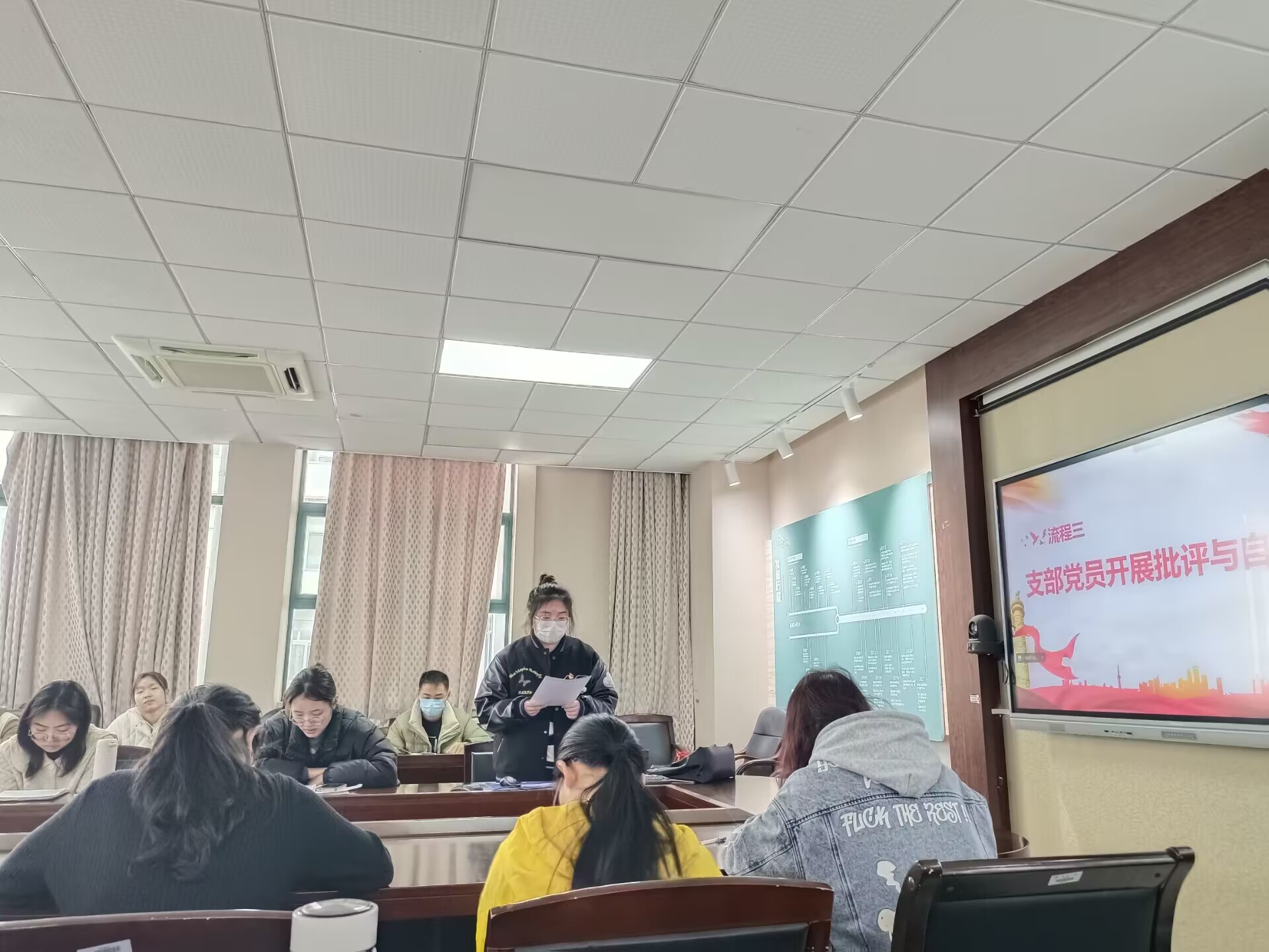 陈老师指出党内生活是党员同志们的第一生活,强调各位党员同志要时刻牢记和遵守党组织的纪律要求,希望大家能够进行自我约束和自我发展,在自我批评中要如实反应自身问题。在批评和自我批评的过程中,能够对自己和其他党员有一个更为透彻的了解。同时也希望党员同志们对新一年的自我要求能够有所提高。