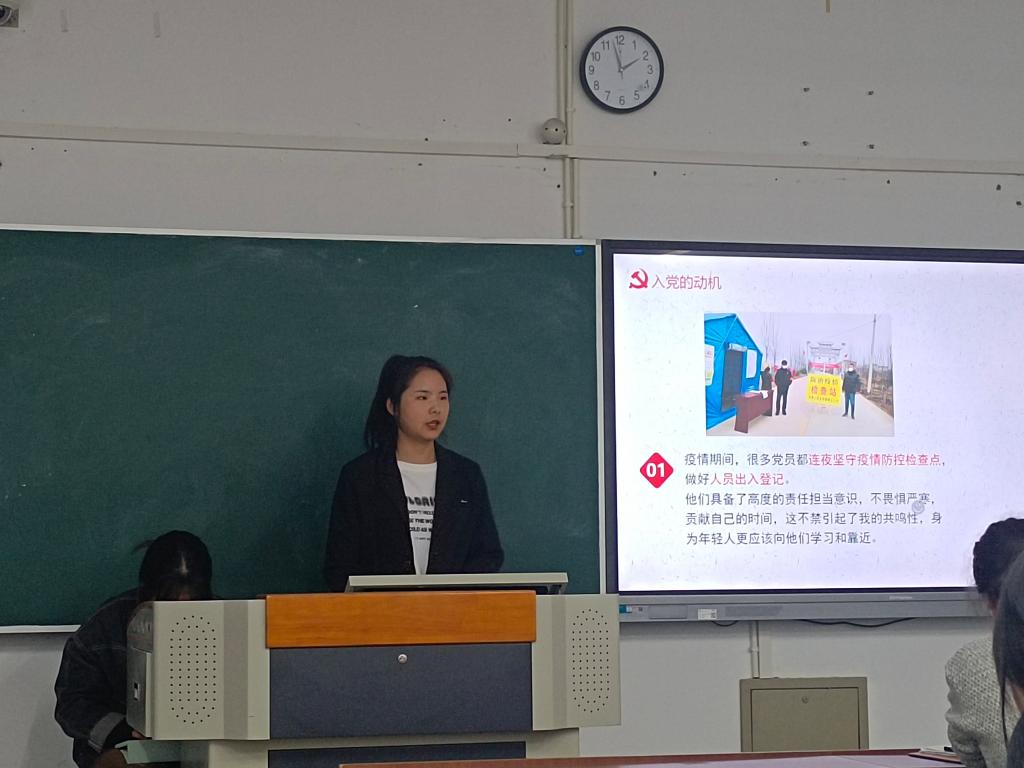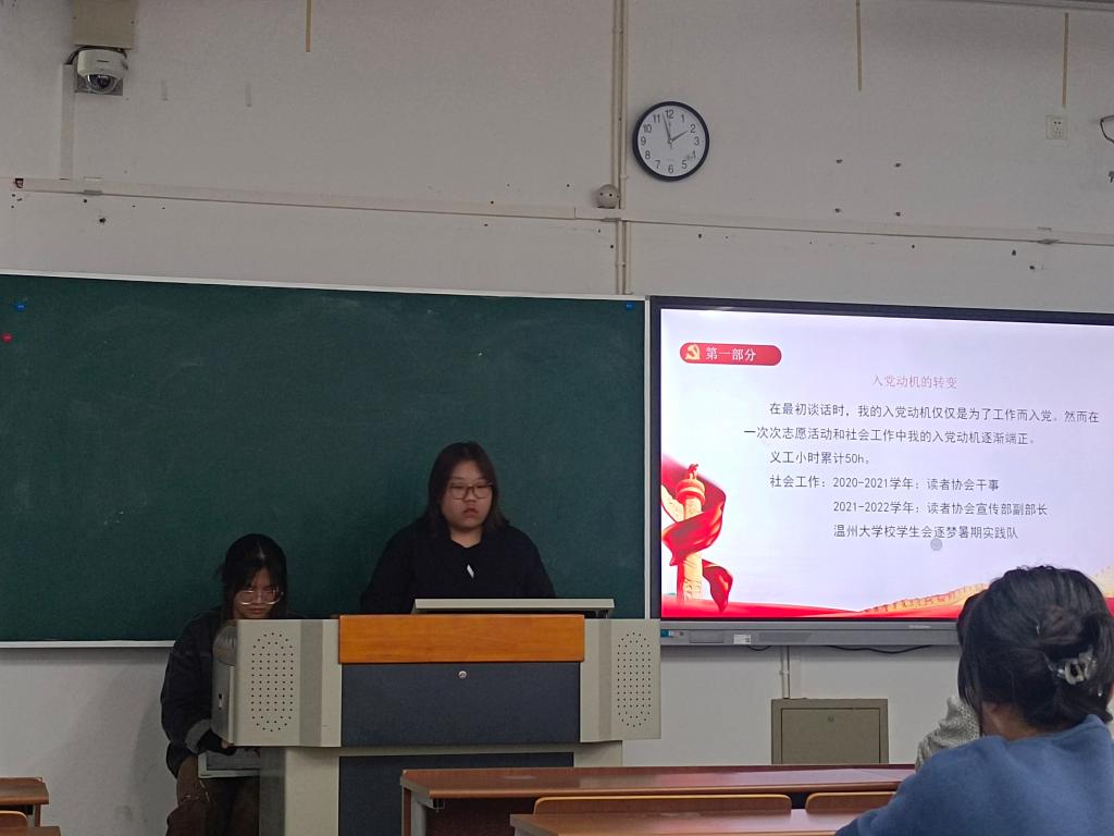 会议第一项议程,支部代理副书记魏金燕同志宣布本科生第二党支部2022年下半年拟发展对象遴选答辩会开始,并宣读会议流程。本次答辩会应到正式党员22人,预备党员5人,实到正式党员17人,预备党员5人。