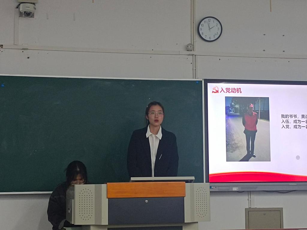会议第二项议程,拟发展对象按照胡亦暄、胡亦、黄钰琳、李炫榕、施鑫宇、吴柯仪、杨雨晴、张锐涵的顺序,使用PPT,从思想,学习,工作以及生活等方面汇报自己的情况。之后由魏金燕同志公布拟对象的党内外座谈会情况。之后由2-3名党员进行现场提问,考察拟发展对象的党的理论知识等方面的学习情况。最后由党支部参会党员根据拟发展对象的答辩情况进行打分。
