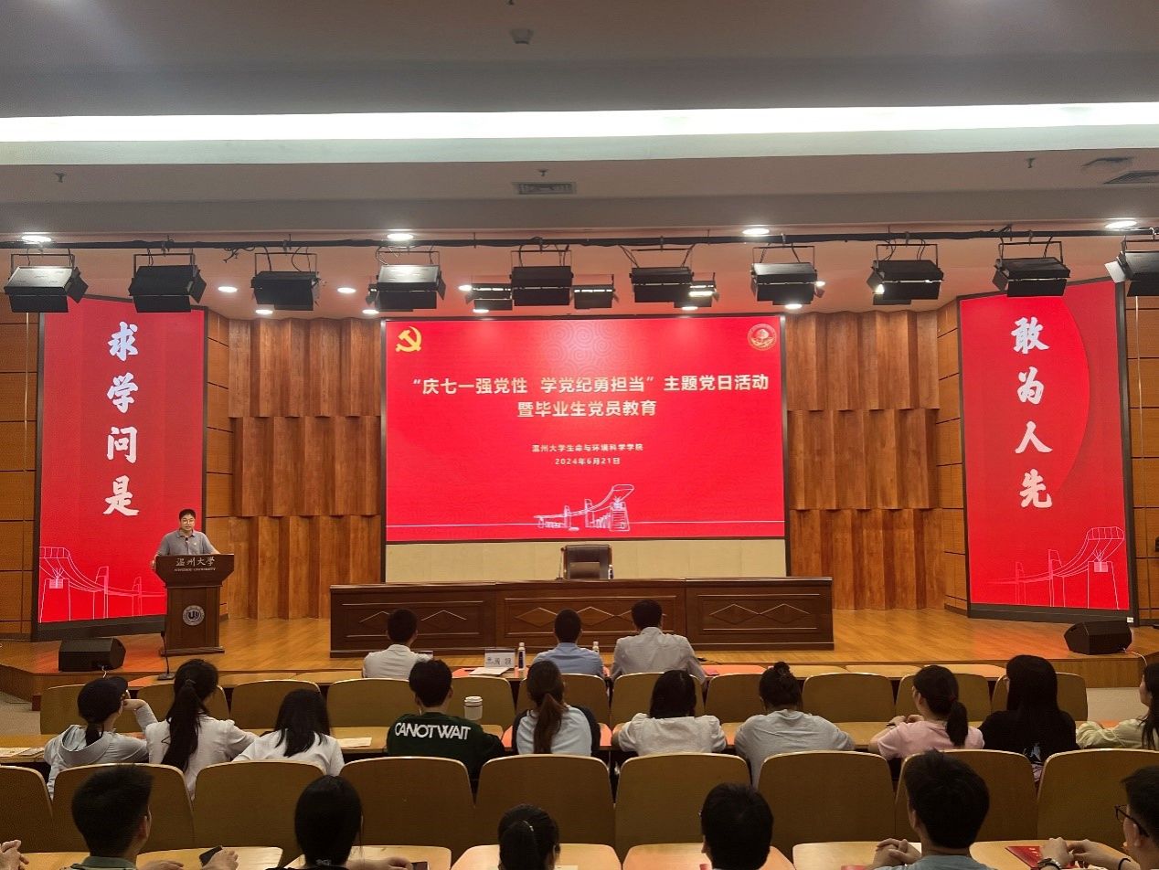 为扎实开展党纪学习教育,树立组织意识,强调政治规矩,引导毕业生党员牢记党的宗旨,走好廉洁人生路,公司于6月21日在岩松堂雁山厅举行“庆七一强党性 学党纪勇担当”主题党日活动暨毕业生党员教育大会。大会由公司党委副书记周领老师主持,公司党委书记李祖祥、专职组织员刘纪峰、学工办副主任钱恩仁出席本次会议。
