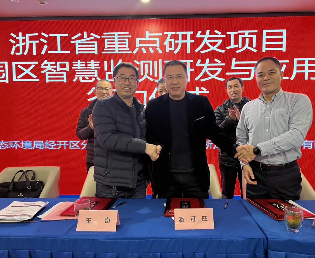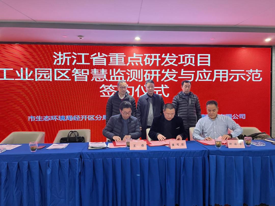 2022年2月10日,公司、温州市生态环境局经济技术开发区分局、浙江中蓝环境科技有限公司三方联动组织实施的浙江省重点研发计划项目“面向工业园区关键污染物智慧监测及区域大气环境质量调控技术研发与应用示范”,在温州市海洋科技创新园正式签订应用示范框架协议。yl永利集团官网登录经理阎秀峰、教工第二党支部书记王奇,浙南产业集聚区管委会副主任金旭东,温州市生态环境局经济技术开发区分局局长潘可旺,中蓝环境董事长朱彬等相关负责人到场参加签约仪式,仪式由温州市生态环境局经济技术开发区分局副局长章广主持。