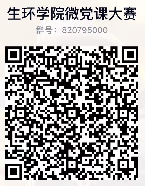 公司各师生党支部根据通知要求进行动员部署,择优推荐参赛选手。其中,各本科生、研究生党支部至少择优推荐1名党员参加公司选拔赛,各支部的入党积极分子可自愿报名。请各参赛选手扫描以下二维码加入院赛工作QQ群,QQ群号码:820795000,并将备注修改为:支部+姓名,并于4月15日(周五)12:00前提交报名表(附件2)和微党课PPT,按“姓名+支部名+微党课PPT”命名,将压缩包发送至生环党服活动部邮箱:shxydfhdb@163.com。