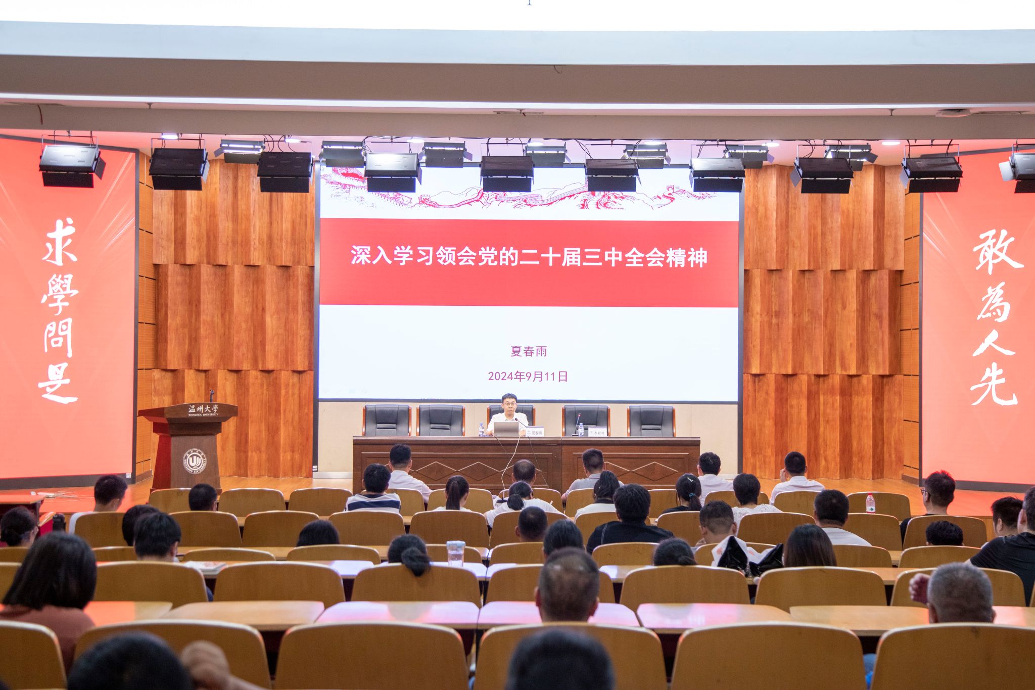 启动仪式上,校宣讲团成员、公司党委委员、组织部部长夏春雨教授受邀作《深入学习领会党的二十届三中全会精神》专题辅导报告。公司党委书记李祖祥详细解读“五学五讲五示范”活动方案并作工作部署。