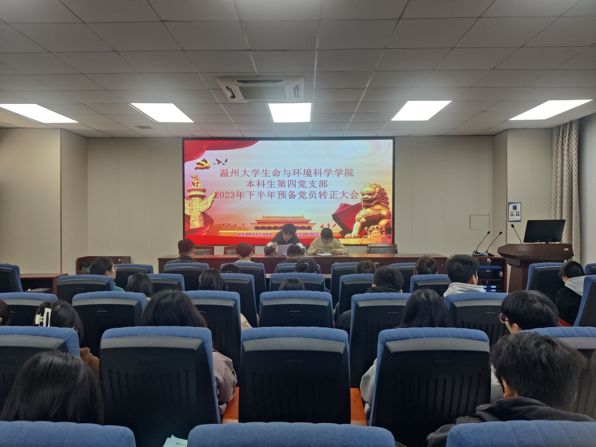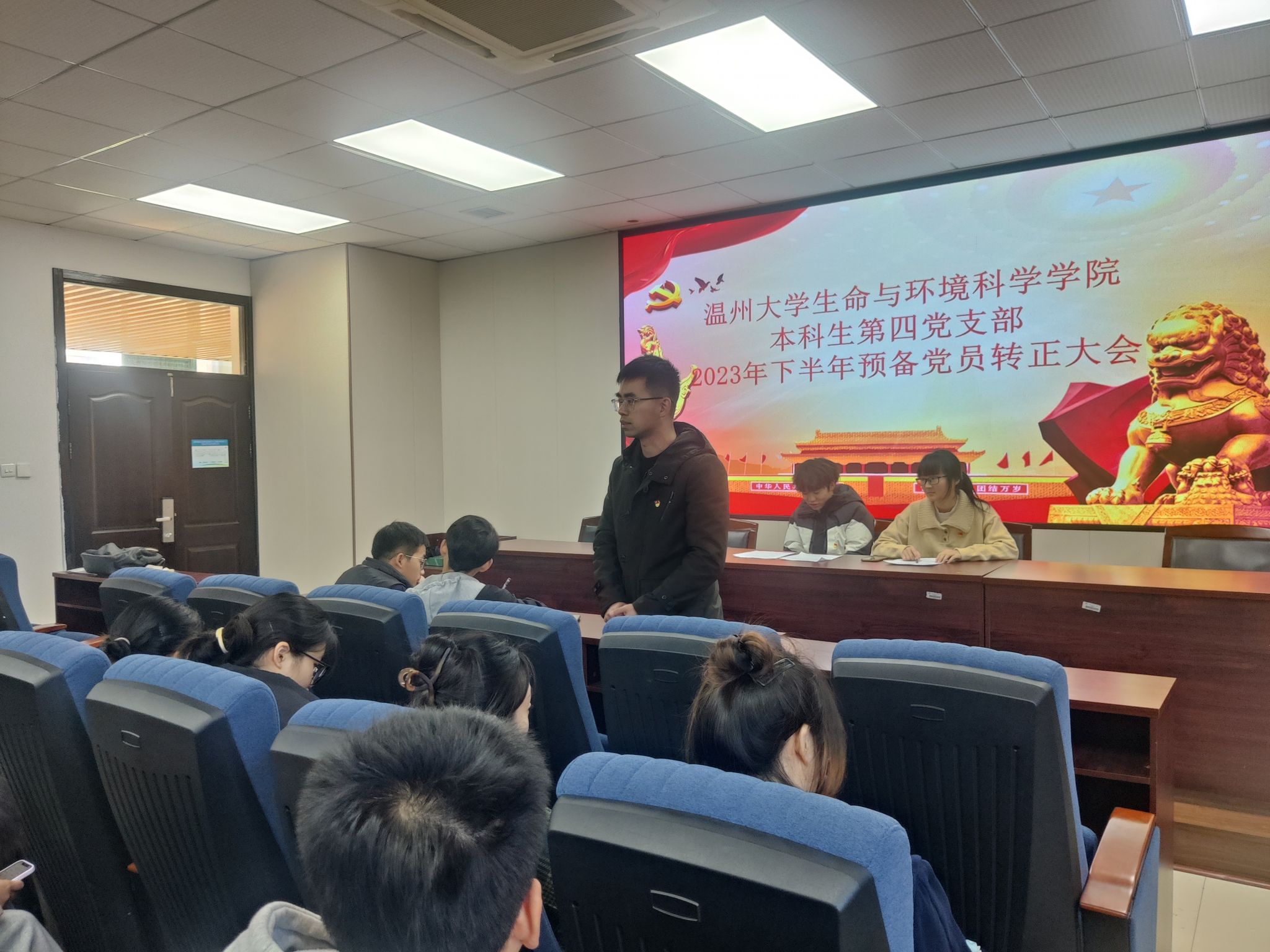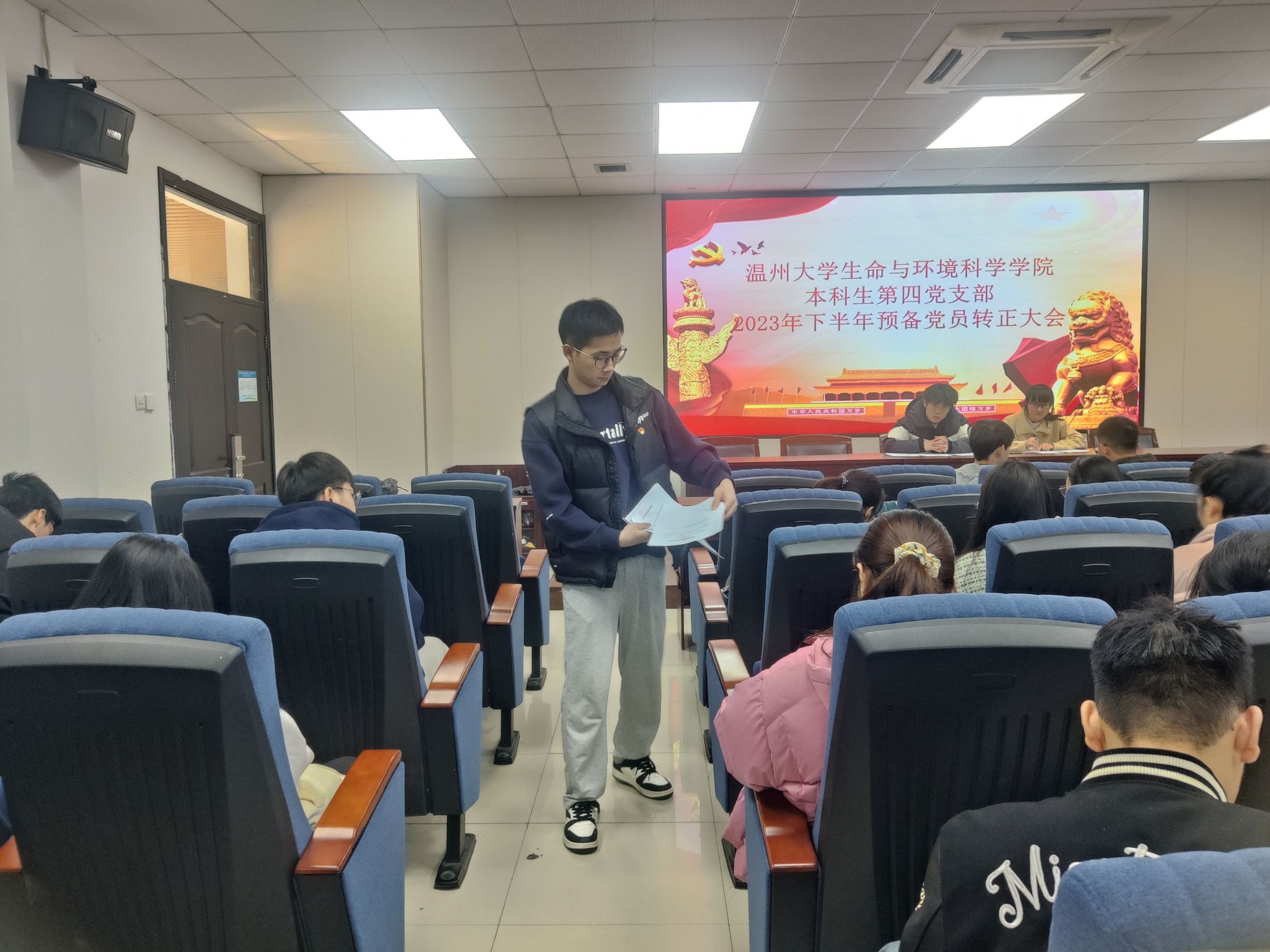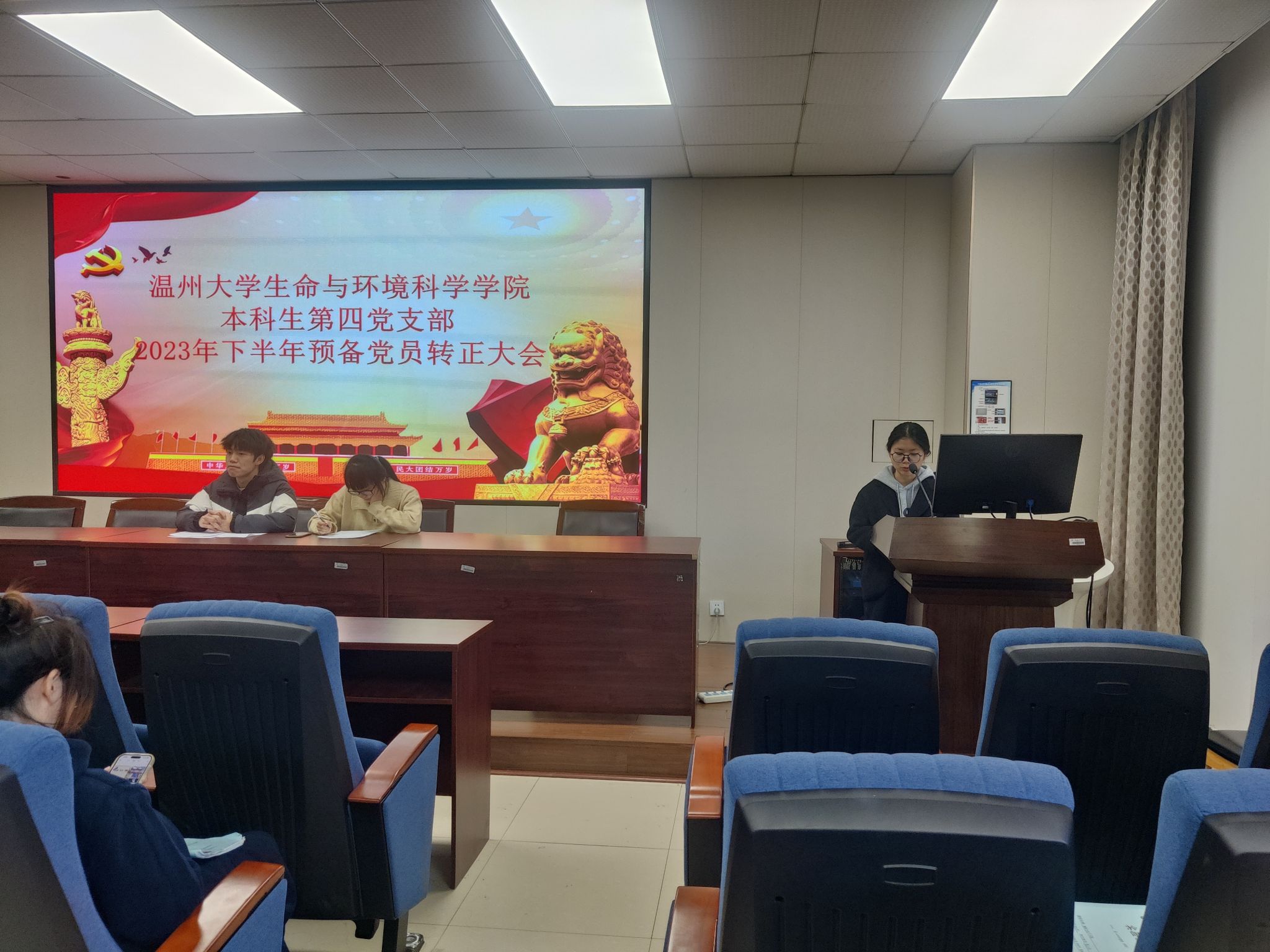2023年12月27日中午,公司本科生第四党支部于10B-202会议室举行yl永利集团官网登录本科生第四党支部转正大会,讨论了柴诗怡同志的转正问题。本次会议应到正式党员31人,预备党员18人,实到正式党员25人,预备党员14人。本次大会由代理组织委员仇尔杰和代理副书记吕晓彤主持,吴恒松同志担任监票人,童淼飞同志担任计票人。
