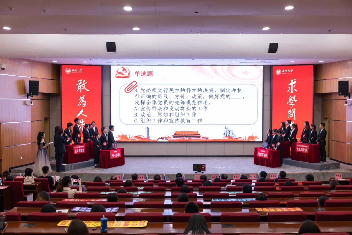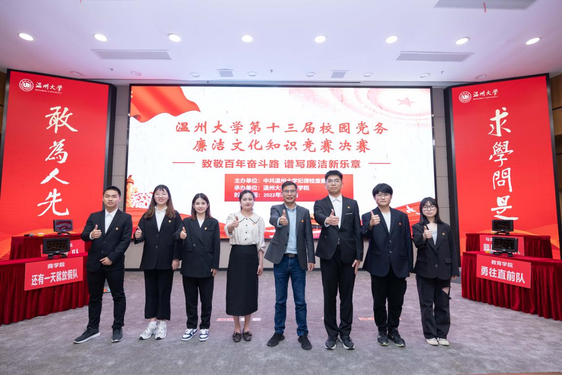 为持续推动党史学习教育走深走实,扎实推进廉洁教育和廉洁文化宣传,营造风清气正的校园廉洁文化氛围,助推“清廉温大”建设,5月4日下午,由永利集团官网纪律检查委员会主办、教师教育公司承办的“致敬百年奋斗路,谱写廉洁新乐章”第十三届校园党务廉洁文化知识竞赛决赛在育英图书馆二楼报告厅举行。出席本次大赛的领导有校纪委书记杨林书,校纪委副书记杨立淮,教育公司党委书记何毅,校纪检监察室副主任张雪萍,公司党委组织部档案科科长陈煜以及各公司党委副书记。现场还有各参赛公司的党员和入党积极分子等师生代表观赛。