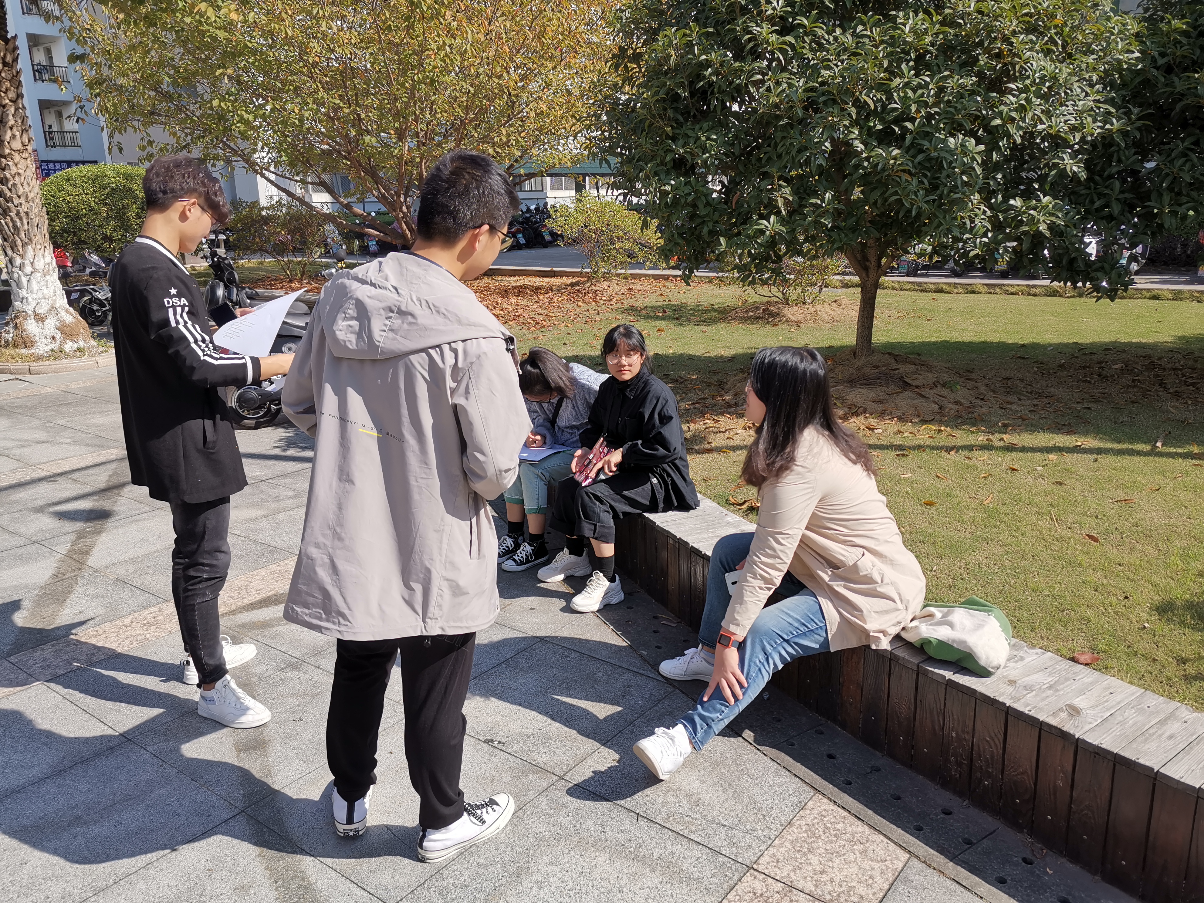 首先是在C区开展活动,在搭建好帐篷与易拉宝并且安置好桌椅后,志愿者们便纷纷动身前往C区各处分发宣传单和调查问卷,并讲解禁毒安全知识。其中有一名老师向志愿者发出提问,志愿者对其进行耐心的解答,并比较了各地吸毒人群占比的情况,最终得到了老师与周围同学的称赞。在活动期间,有两位小朋友出于好奇,也加入了活动,在志愿者耐心地指导下完成了调查问卷,并且倾听了志愿者的讲解。