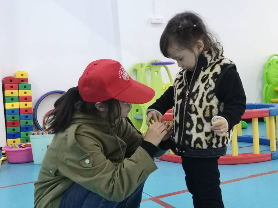 12:50分左右,志愿者们带着热情,激情澎湃地聚集在温大南校区南大门,在志愿汇上完成签到后,志愿者们一起走到公交站台乘坐17路公交车前往星之家自闭症康复中心。顺利抵达目的地后,负责人分发小红帽并叮嘱注意事项。拿着事先分配好的名单,在老师的引领下,志愿者们找到了自己要负责照顾的儿童,开始了下午的学习。游戏课上,志愿者们陪着小孩子们一起做操,玩游戏;美劳课上,志愿者们帮助孩子们撕碎红色纸张并填充白色西红柿;感统课上,志愿者和小朋友一起踢球,一起玩耍;精细课上,志愿者和小朋友坐在一起玩玩具;下课时间,志愿者寸步不离小朋友,帮助他们上厕所,整理衣服,口袋里还放着餐巾纸给小朋友擦鼻涕。新一届的“小红帽”成功的成为了“星之家”走廊中一道亮丽的风景,志愿者们的行动赢得了家长和老师的好评。
