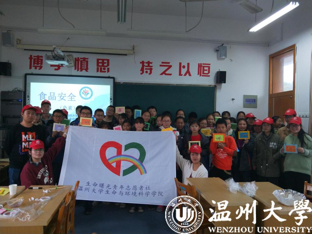 2019年12月25日,永利集团官网“生命曙光”青年志愿者社的志愿者们来到南白象中学开展暖冬系列食品安全的志愿活动,为同学们讲解食品安全的相关知识,协助同学们动手制作天然色素面制品。