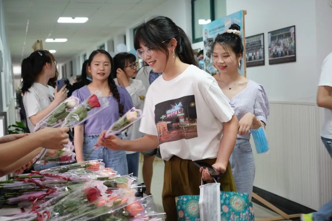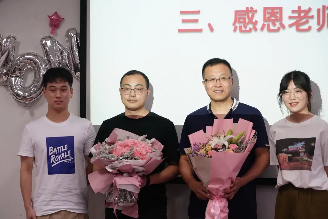 欢送会现场布置了青春照片墙,挂满了公司学子的毕业寄语和毕业祝福,还有大型镂空KT板供毕业生拍照留念,公司为每一位毕业生精心准备了鲜花和专属定制的蛋糕。欢送会上,毕业生共同观看了公司毕业典礼暨学位授予仪式。直播结束后,各毕业班的员工代表上台分享自己四年老员工活的感想,有欢声、有笑语、也有不舍与泪水,这都是属于他们的独家记忆。随后,各毕业班代表向班主任献花,班主任特别感谢员工四年来的陪伴,也祝福所有的毕业生前程似锦,一帆风顺。阎经理也对毕业生们寄予了深厚的希望,并深情的表示,公司和老师永远是同学们坚强的后盾,希望同学们常回家看看。