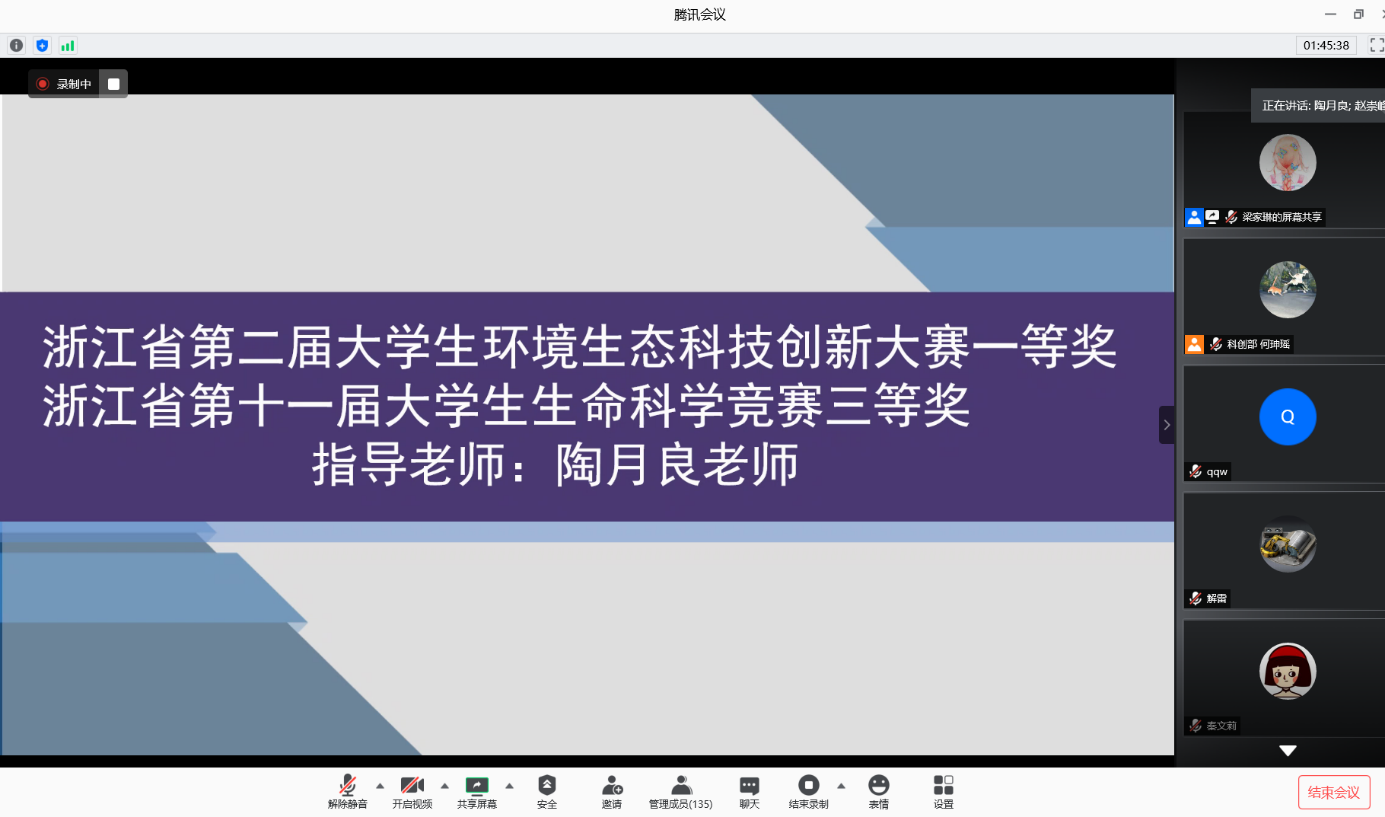 2020年8月,浙江省第三届环科赛和第十二届生科赛正在如火如荼的进行着。为了让公司学子再创佳绩,8月5日晚上7点,公司举行线上省环科赛和生科赛经验交流会,书记陈孟森、副经理陈华林、副书记赵崇峰、2019年获奖团队的指导老师、员工代表及2020年参赛员工参加本次会议。会议由赵崇峰副书记主持。